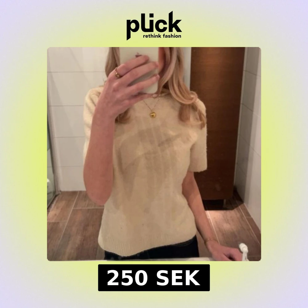 Säljer en supermjuk och stilren beige stickad tröja med korta ärmar. Perfekt för lager-på-lager och funkar lika bra till jeans som till kjol. Enkel och klassisk design med rund halsringning och ribbade kanter.💕