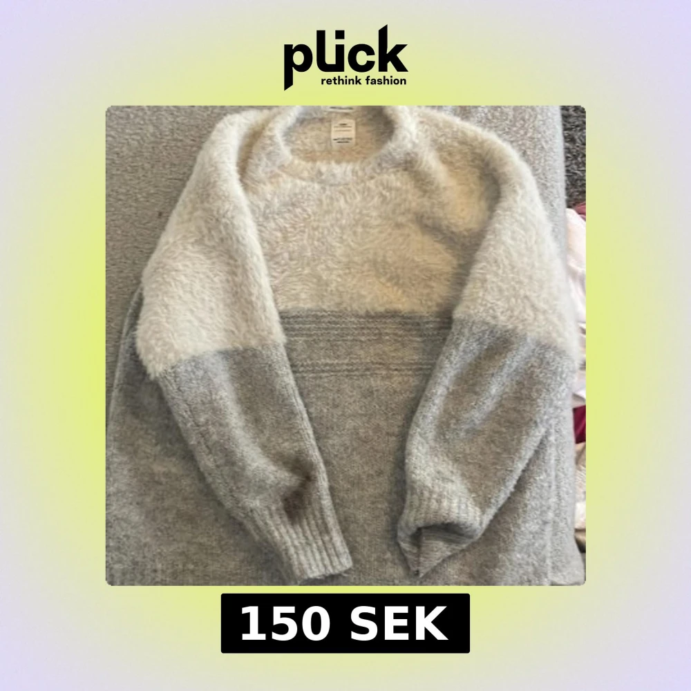 Supermjuk och fluffig stickad tröja från Zara i tvåfärgad design med vit upptill och ljusgrå nedtill. Tröjan har långa ärmar och rund halsringning, perfekt för kalla dagar. 💕