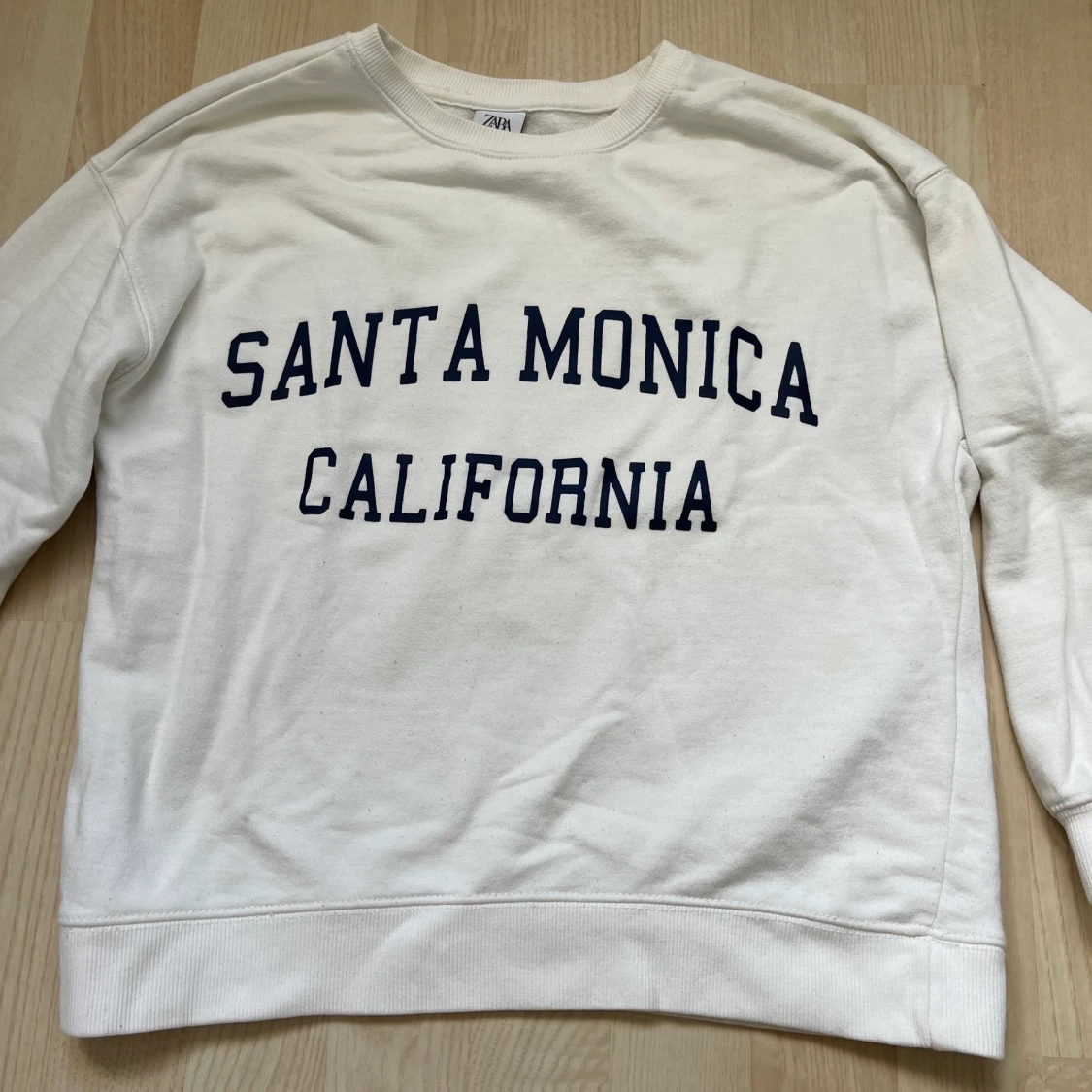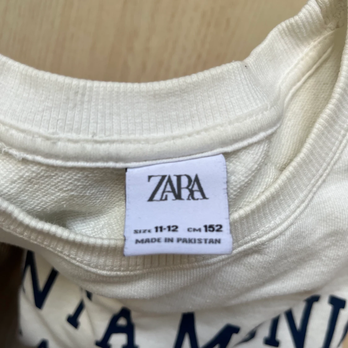 Vit sweatshirt med tryck från zara i strl 11-12 år/152cm. Fin sweatshirt i gott skick, köparen står för frakt💓