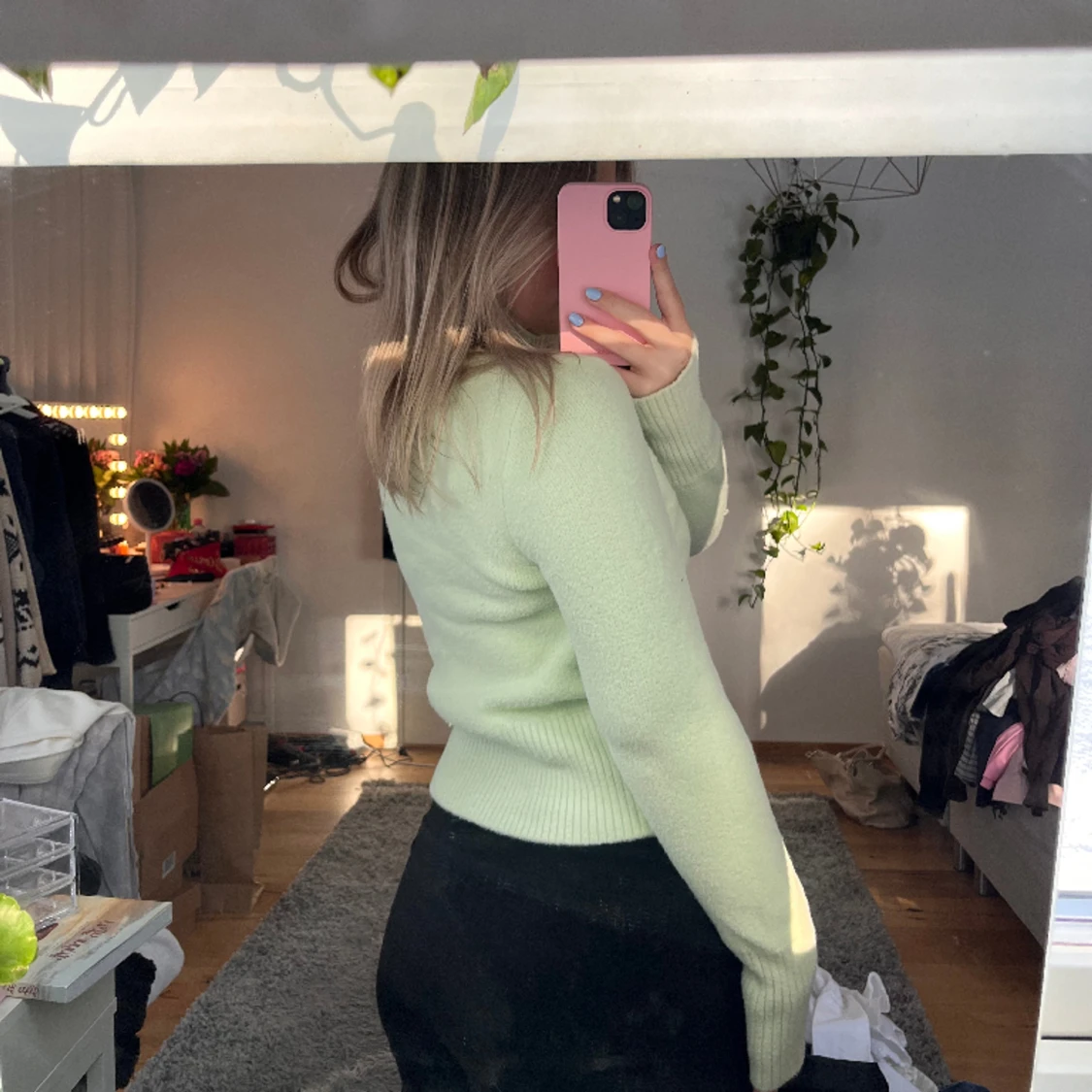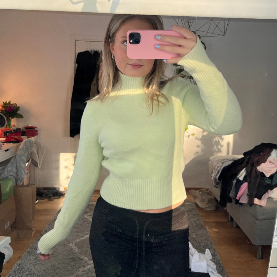 Söt stickad mintgrön tröja med hög krage! Bra skick💚😽