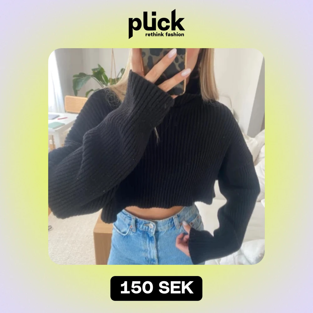 Ribbade svart kort tröja med polokrage från Zara i storlek M. 🖤