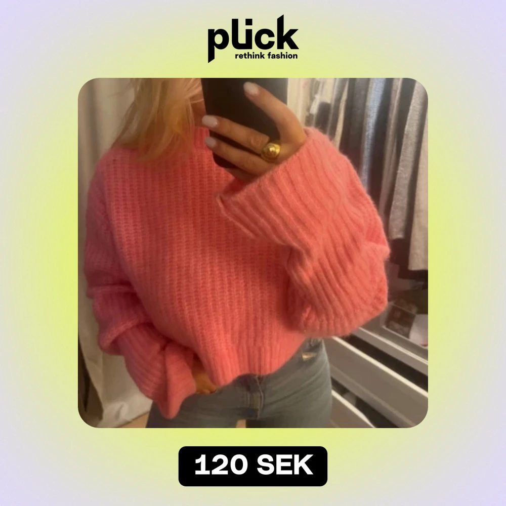 Rosa stickad tröja med långa vida armar, kommer tyvärr aldrig till användning.