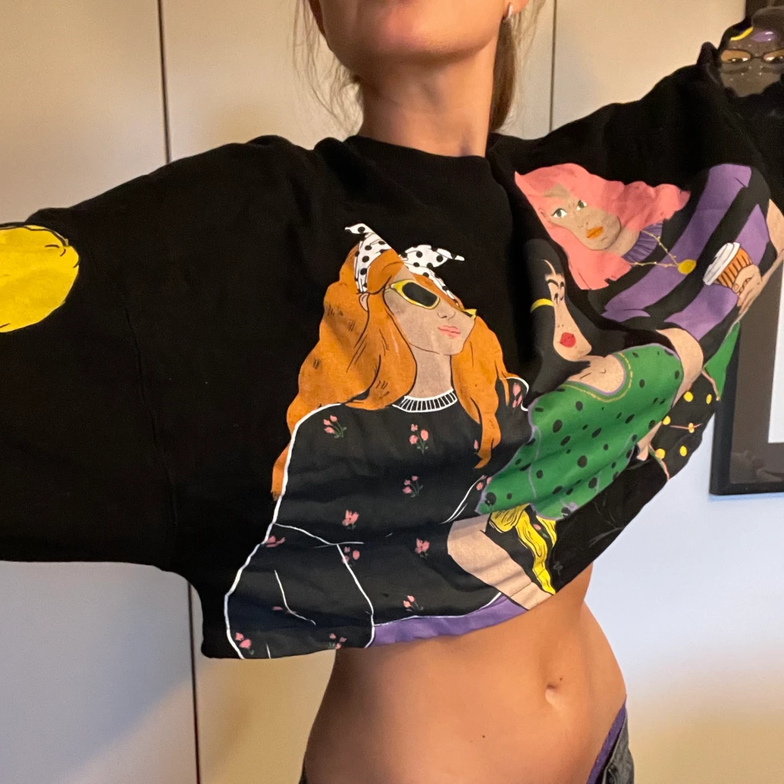 Långärmad tröja men som är som en croptop! Super skön, från zara! Stl medium! Men är lite oversized! Snyggt print som är i bra skick!
