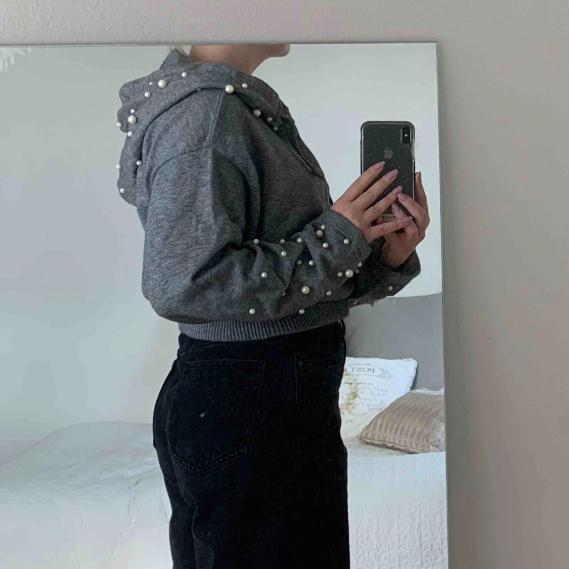 Jättemysig hoodie från Zara, pärlor på slutet av ärmarna och på luvan. Använd ett par gånger och köpt för kanske 2 år sedan🥰kontakta för fler bilder köparen står för frakt