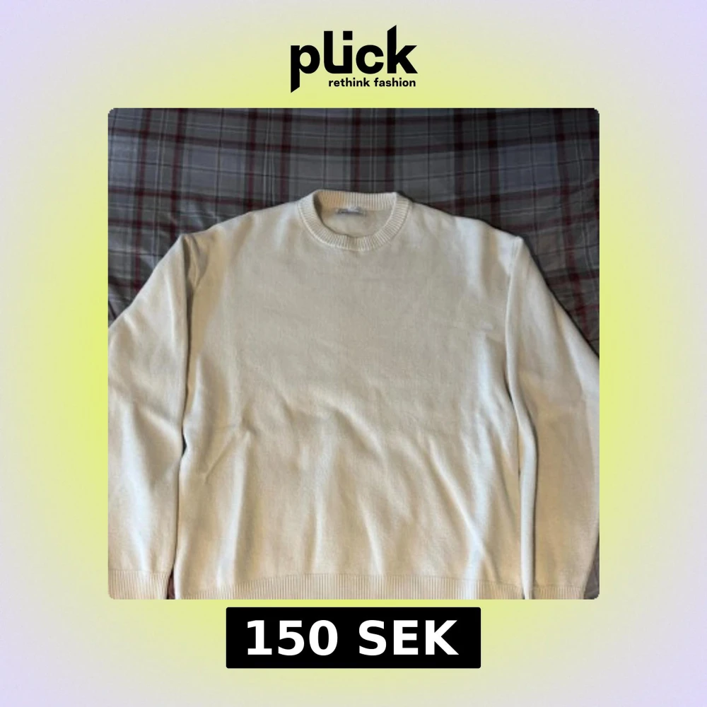 Säljer en stilren vit stickad tröja från Zara med rund halsringning och ribbade muddar. Perfekt för lager-på-lager och enkel att matcha med olika outfits. Klassisk modell med lång ärm och mjukt material.