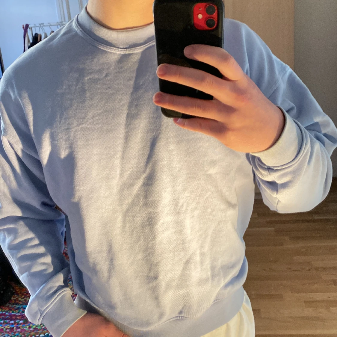 En helt oanvänd ljusblå crewneck från Zara. Storlek S men funkar bra till M