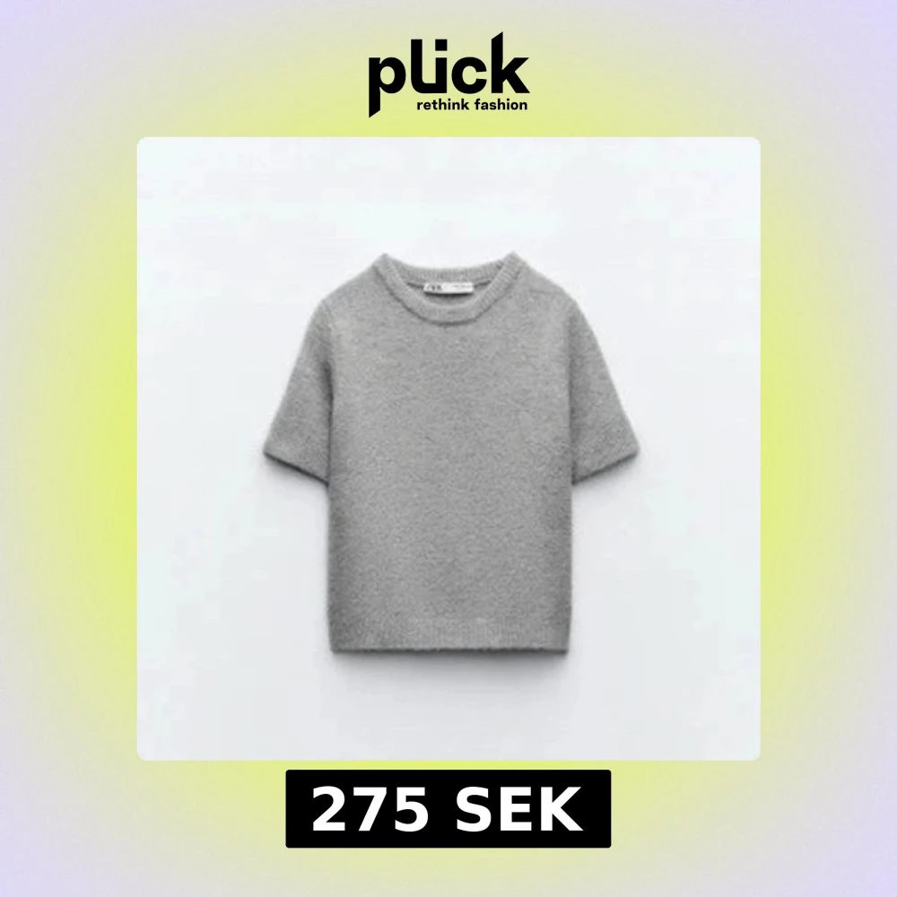 Säljer en trendig grå stickad tröja från Zara i storlek M men skulle säga att den passar bättre på S. Tröjan har korta ärmar, rund hals och är tillverkad i mjukt stickat material. Perfekt nu inför hösten. Enkel och clean design som funkar till jeans eller kjol. Säljer då den inte kommer till använding, använd ca 3 gånger.