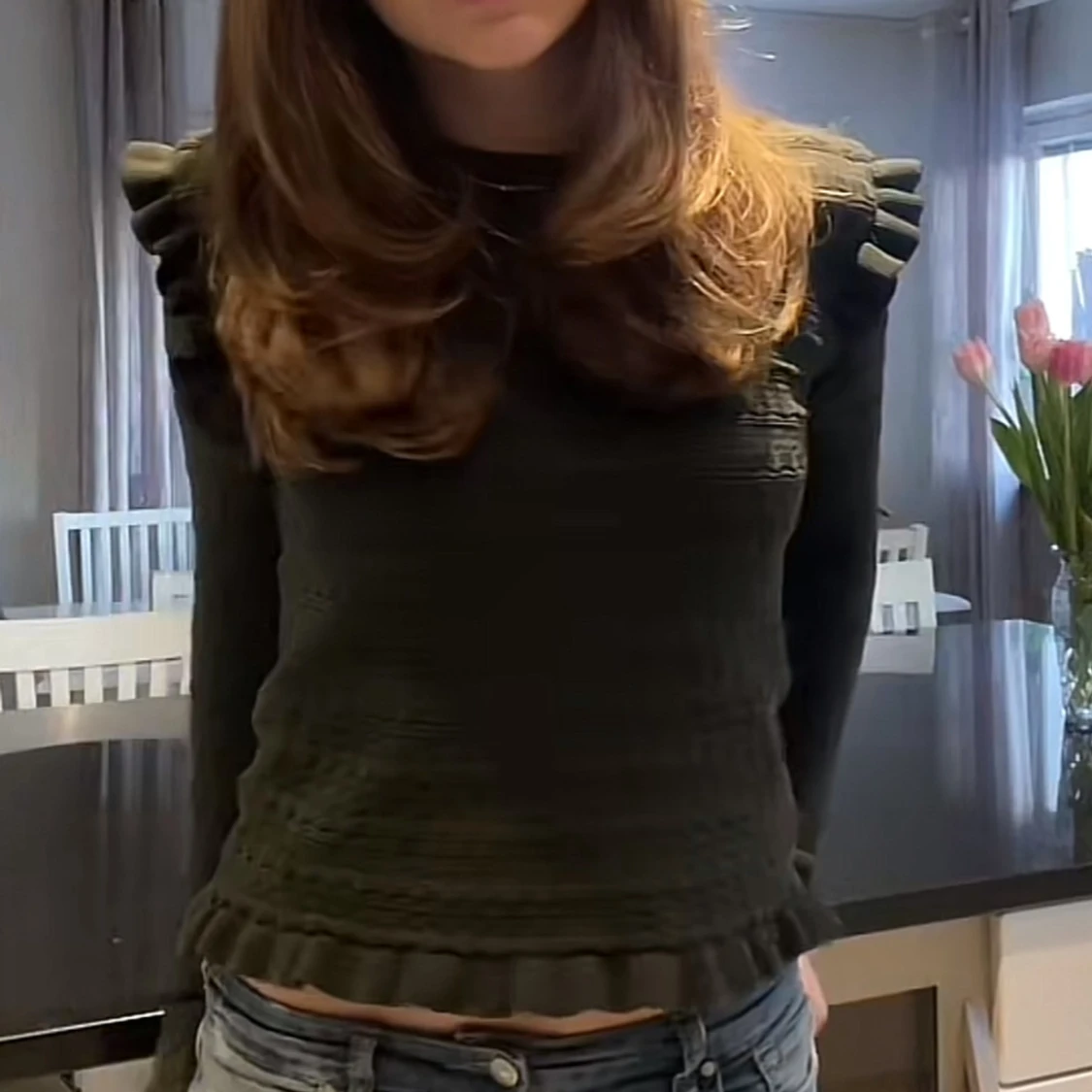 Snyggaste gröna tröjan från Zara med volanger och ”ribbad” 🥰