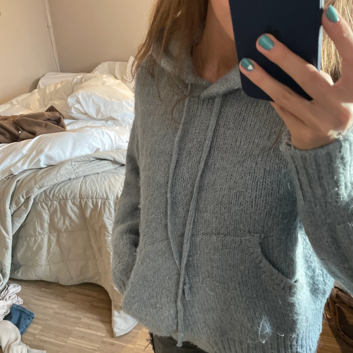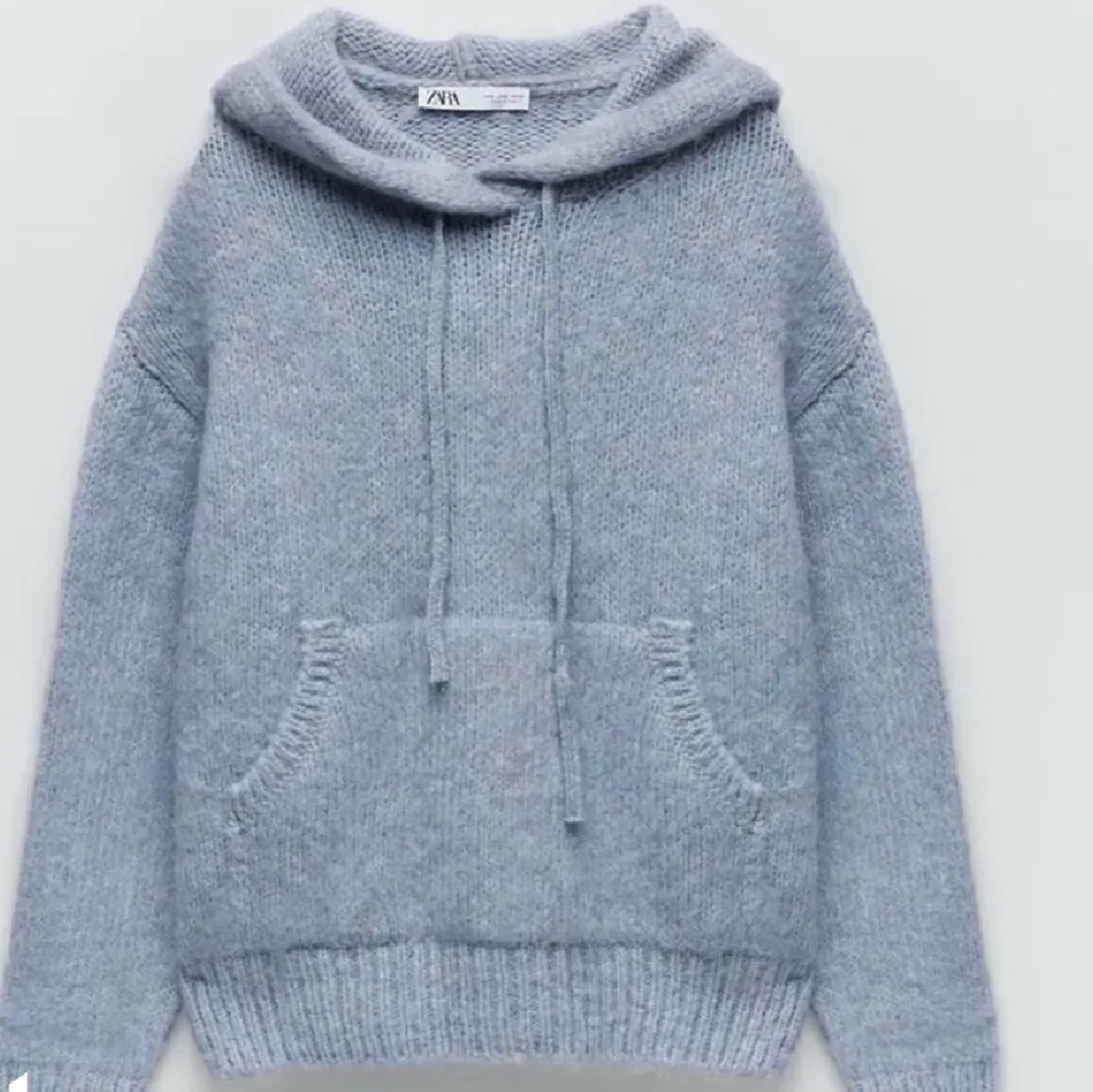Säljer denna blå stickade Zara hoodie då den inte kommer till användning!! Så skönt stickad och super mysig! ❤️❤️ köp dirket för 450🤗❤️❤️