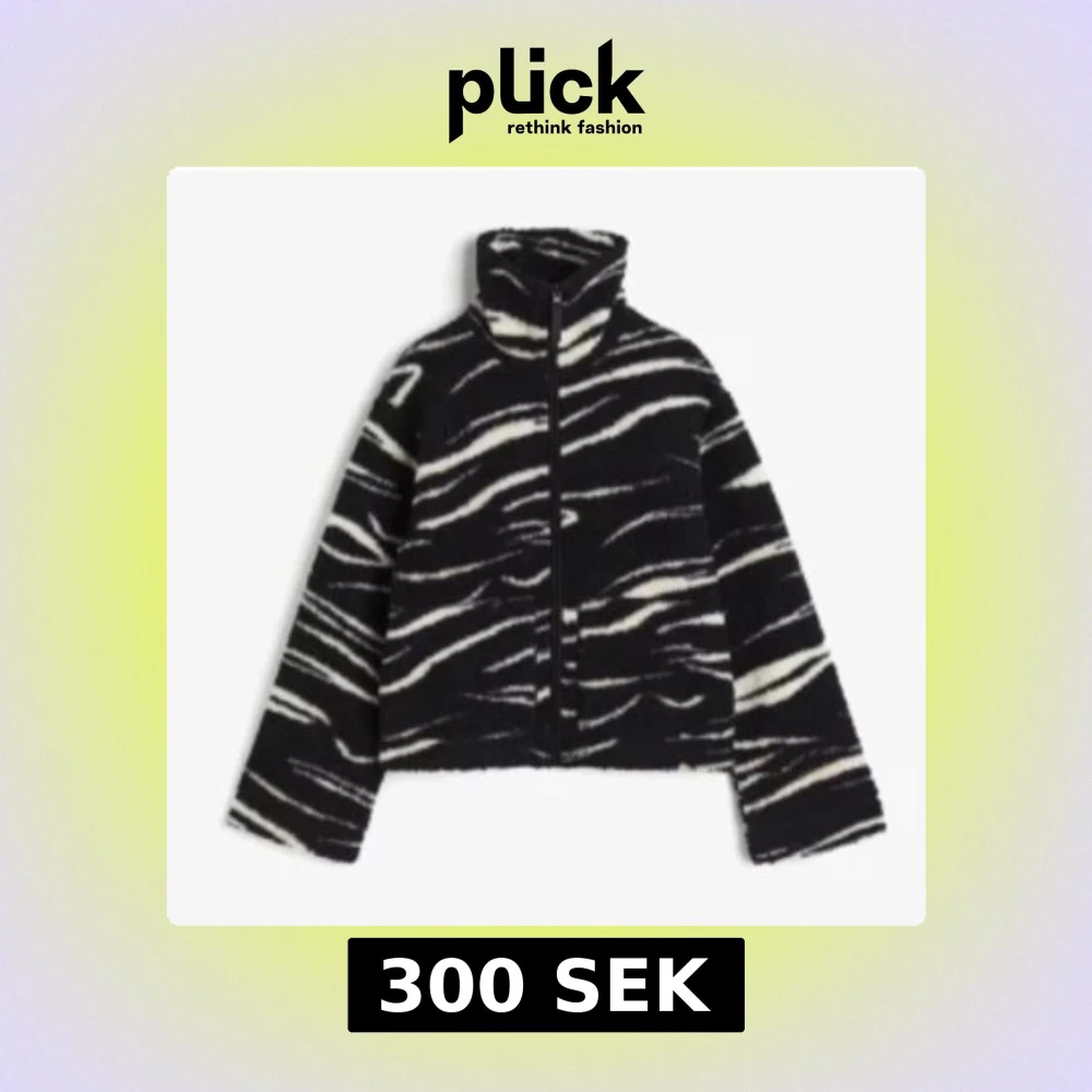 Säljer en fluffig teddyjacka från H&M i zebramönster. Jackan är svart med vita ränder, har hög krage och dragkedja framtill. Perfekt för unika outfits och varm och skön på vintern.