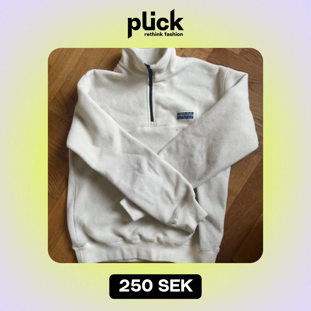En jätte mysig värmande fleece tröja med en half zip. Den är i bra skick och säljs då den inte längre passar den är vit och är storlek xs men passar även S Nypris är 699 elller 599 minns inte riktigt.