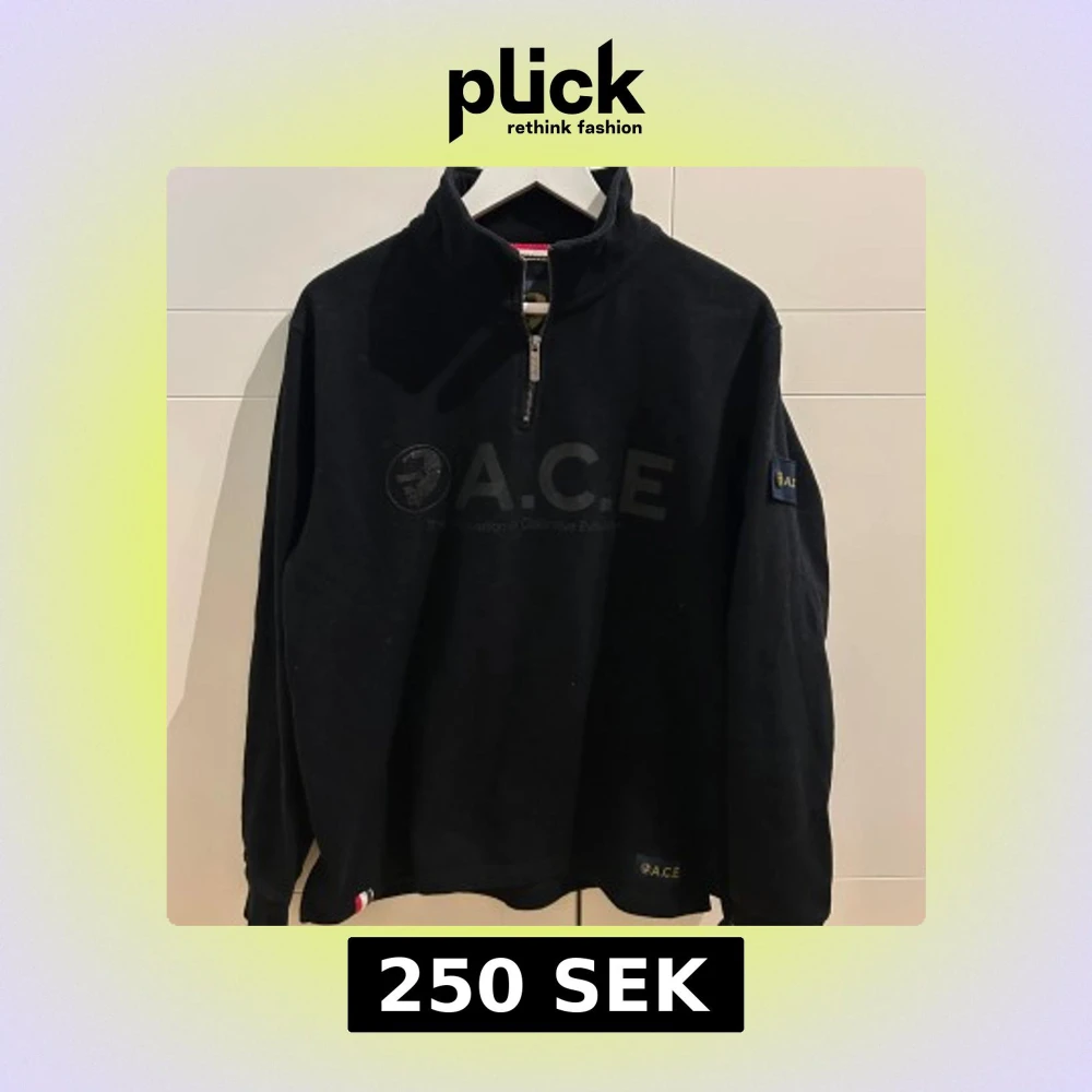 Snygg svart tröja från A.C.E med dragkedja vid halsen. Perfekt för en stilren look. Tröjan har långa ärmar och en diskret logga på bröstet och ärmen.