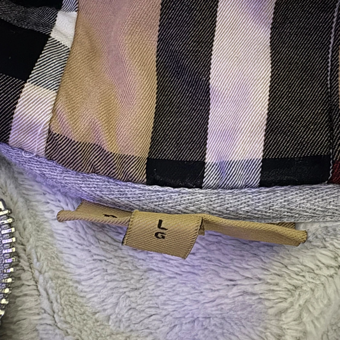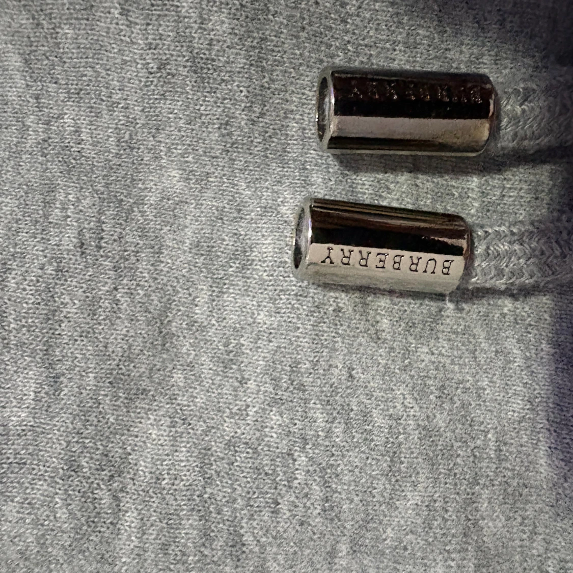 Säljer en grå hoodie från Burberry i storlek L. Tröjan har dragkedja, snörning i huvan och den klassiska Burberry-rutiga insidan av huvan. Broderad logga på bröstet och mjukt foder. Perfekt för dig som vill ha en stilren och lyxig look.