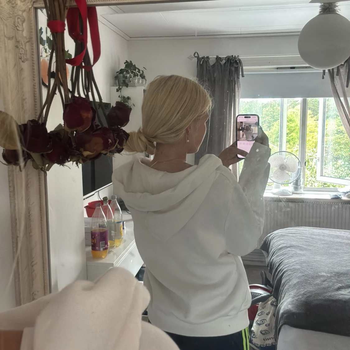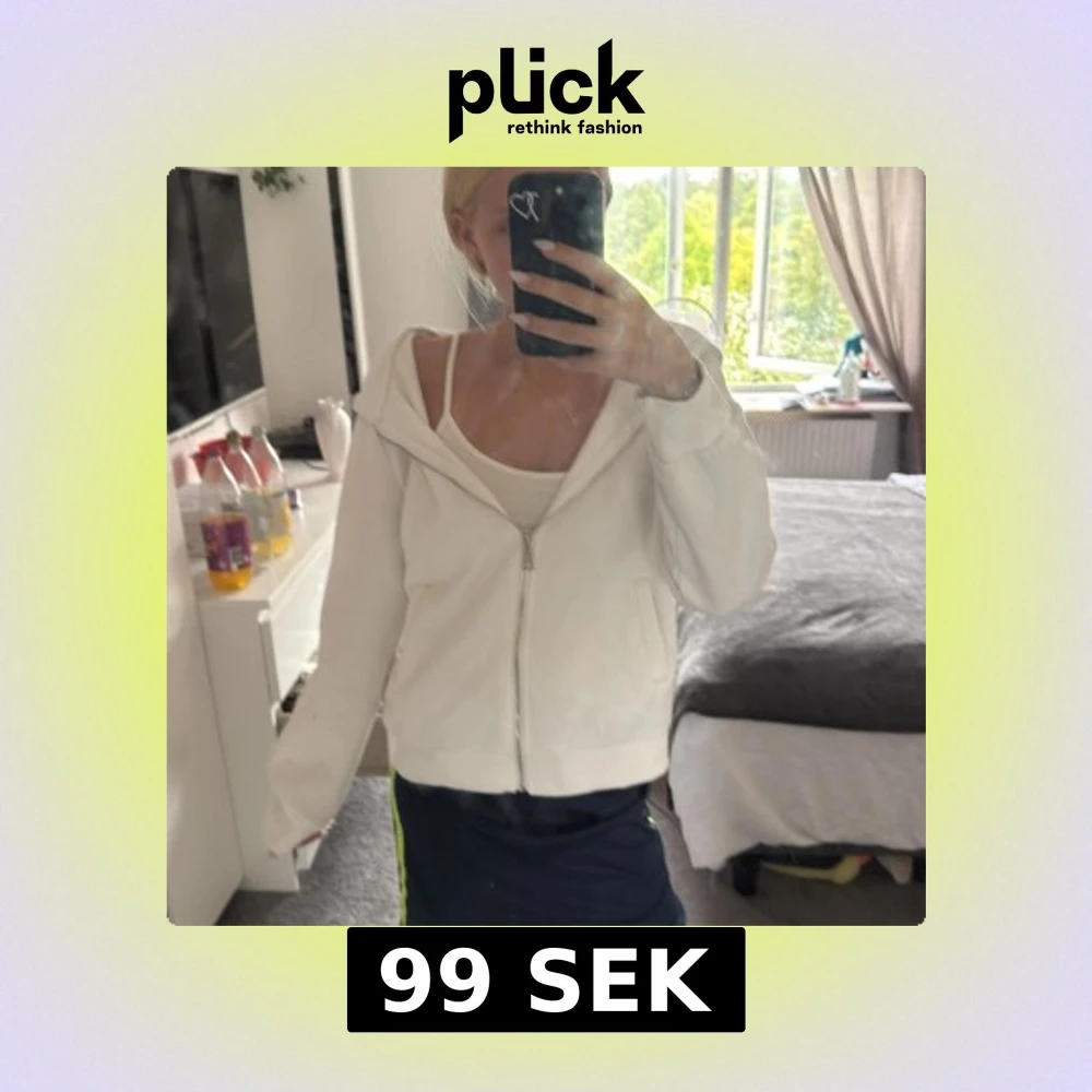Vit hoodiejacka med dragkedja framtill och stor huva. Jackan har en avslappnad passform och är tillverkad i mjukt bomullsmaterial. Perfekt för chill dagar eller när du vill ha en enkel och clean look. 💕