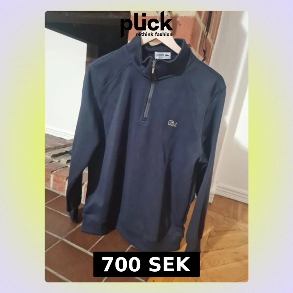 Snygg marinblå långärmad tröja från Lacoste med klassisk krokodillogga på bröstet. Tröjan har en ståkrage och half zip-dragkedja framtill. Regular fit och tillverkad i mjuk bomull, perfekt för chill dagar. Taggar kvar på plagget.