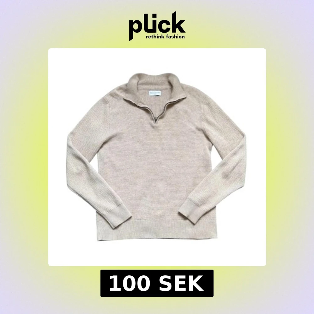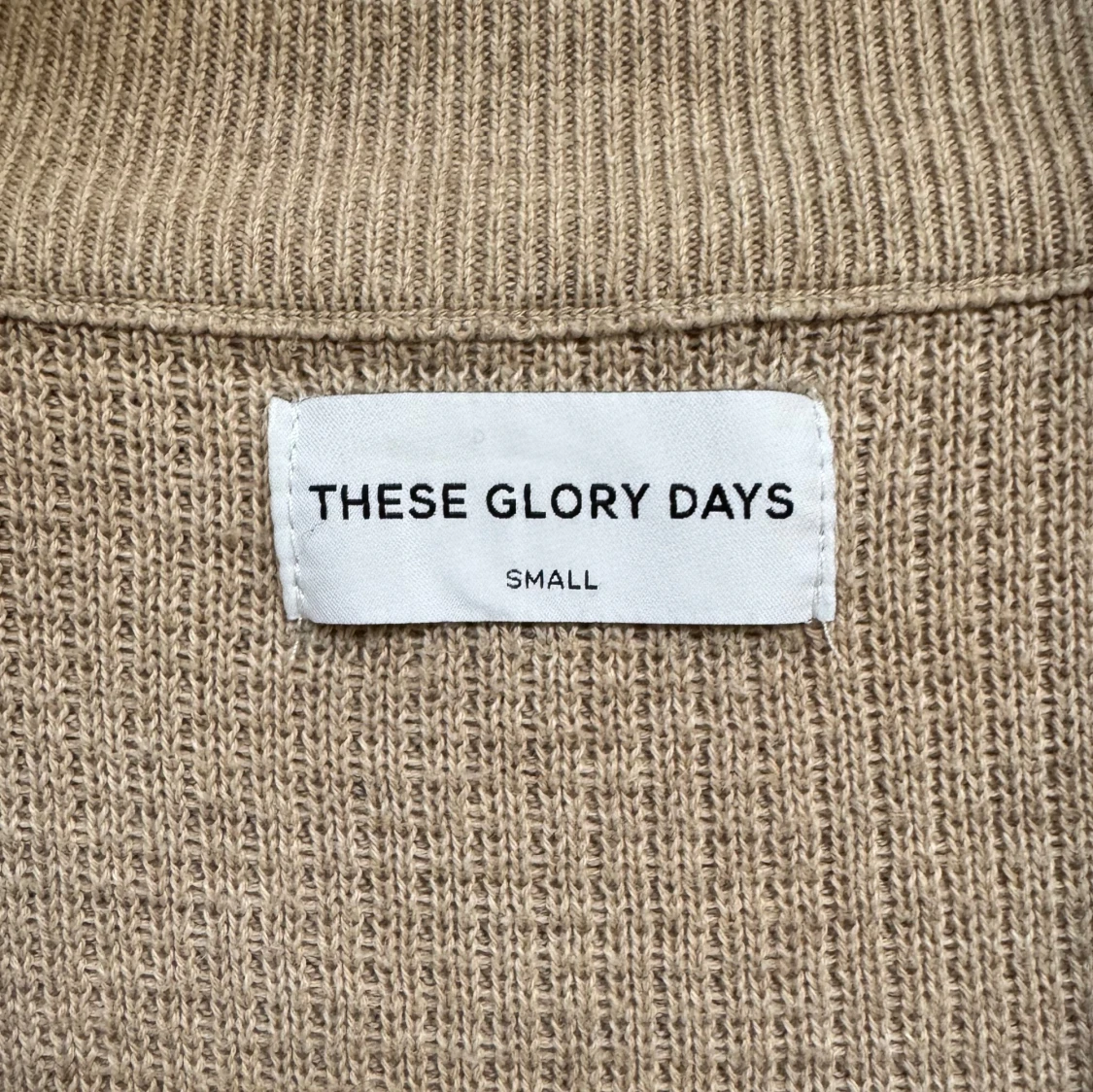 Snygg beige stickad tröja från These Glory Days i storlek small. Tröjan har en klassisk half zip-dragkedja vid kragen och är långärmad. Perfekt för lager-på-lager och chill höst- eller vinterstil.