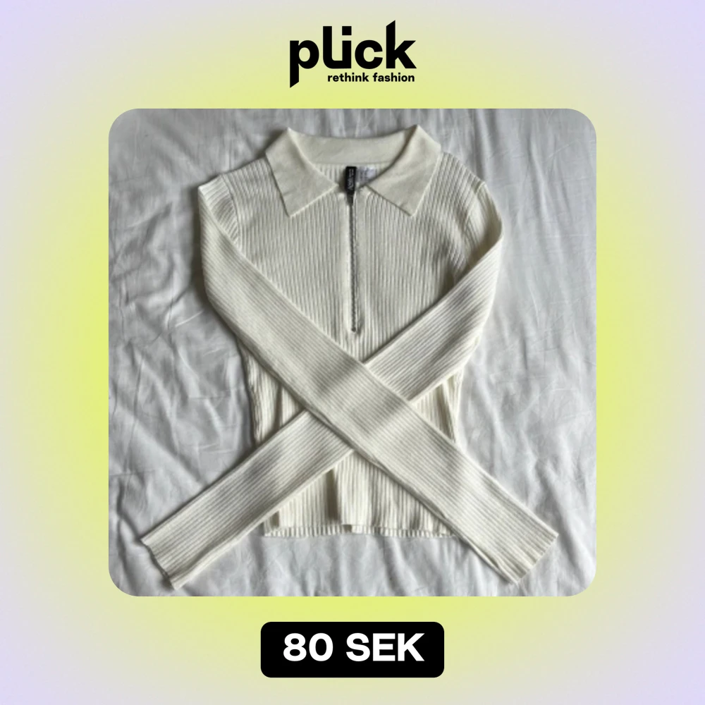 vit ribbad zip-tröja som har en liten krage🌸 sitter sjukt bra på!