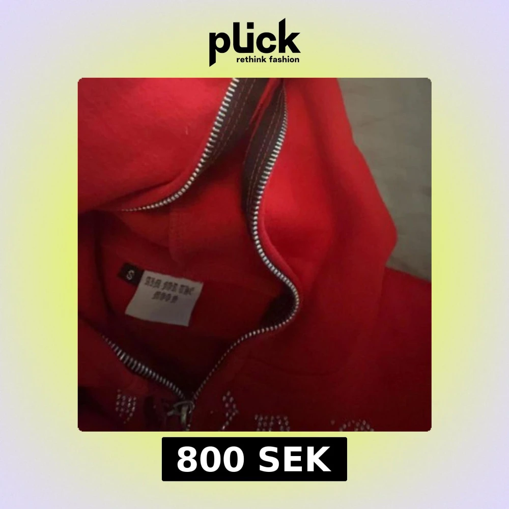 Röd hoodie med dragkedja från Aim For The Moon. Framsidan har blingade detaljer med text och motiv av en tecknad figur och måne. Tröjan har huva, långa ärmar och fickor framtill. Perfekt för dig som gillar statement-plagg och streetstyle.