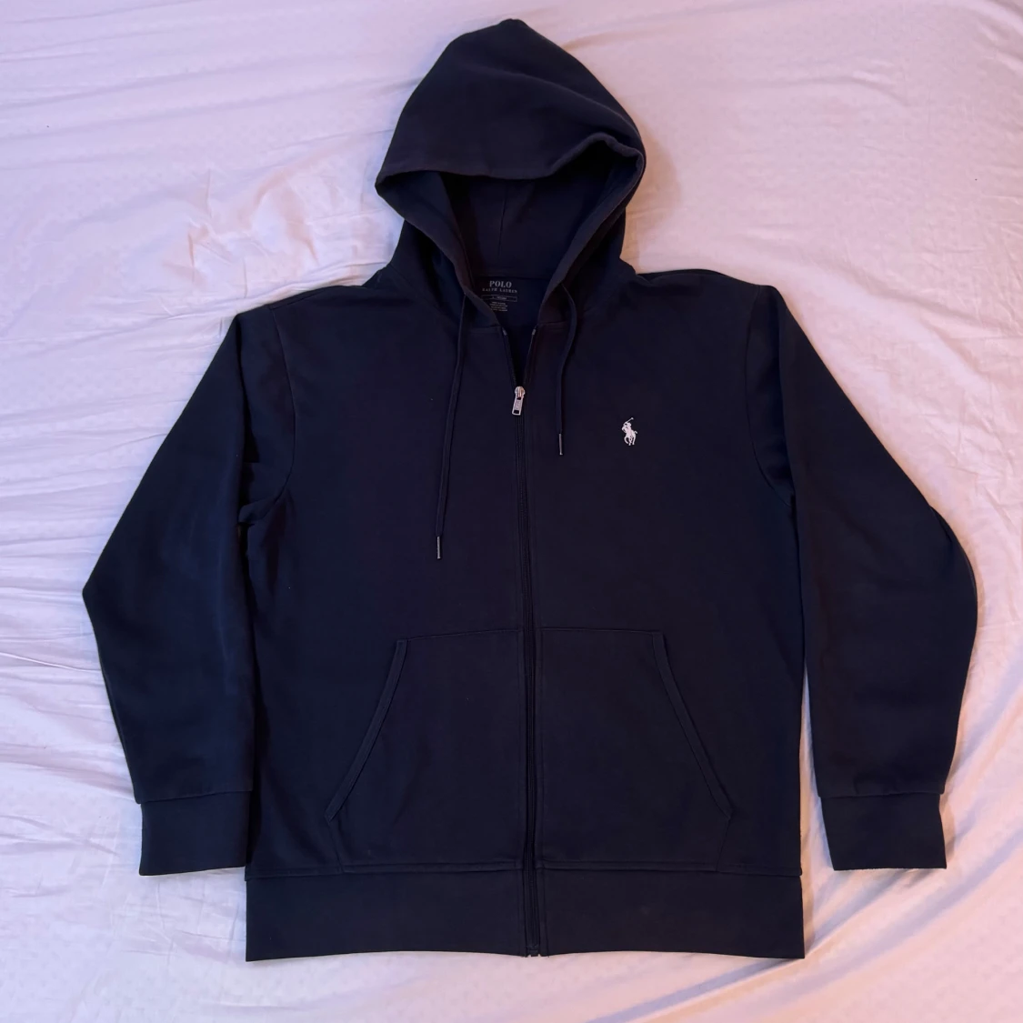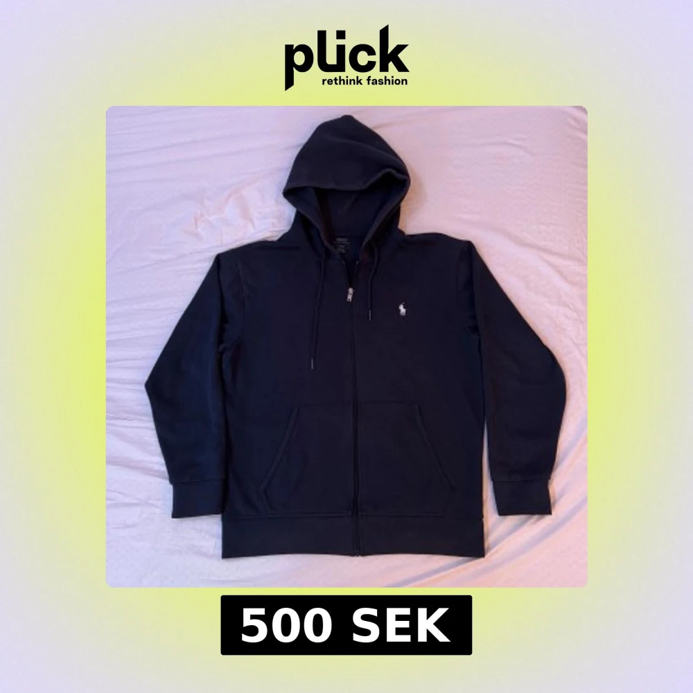 Marinblå ziphoodie från Ralph Lauren, stl. L passar M