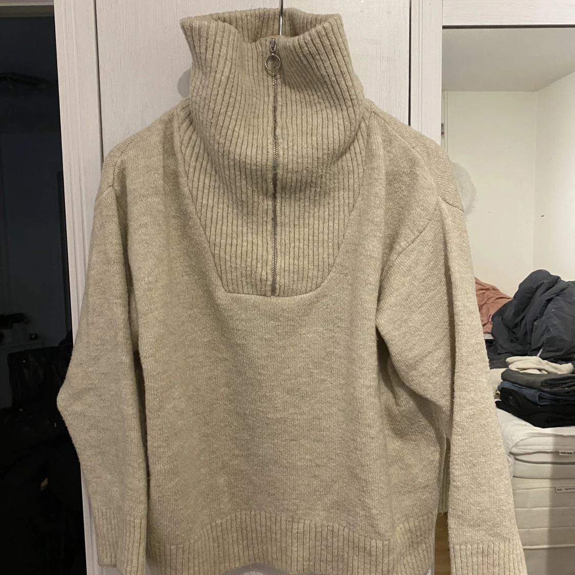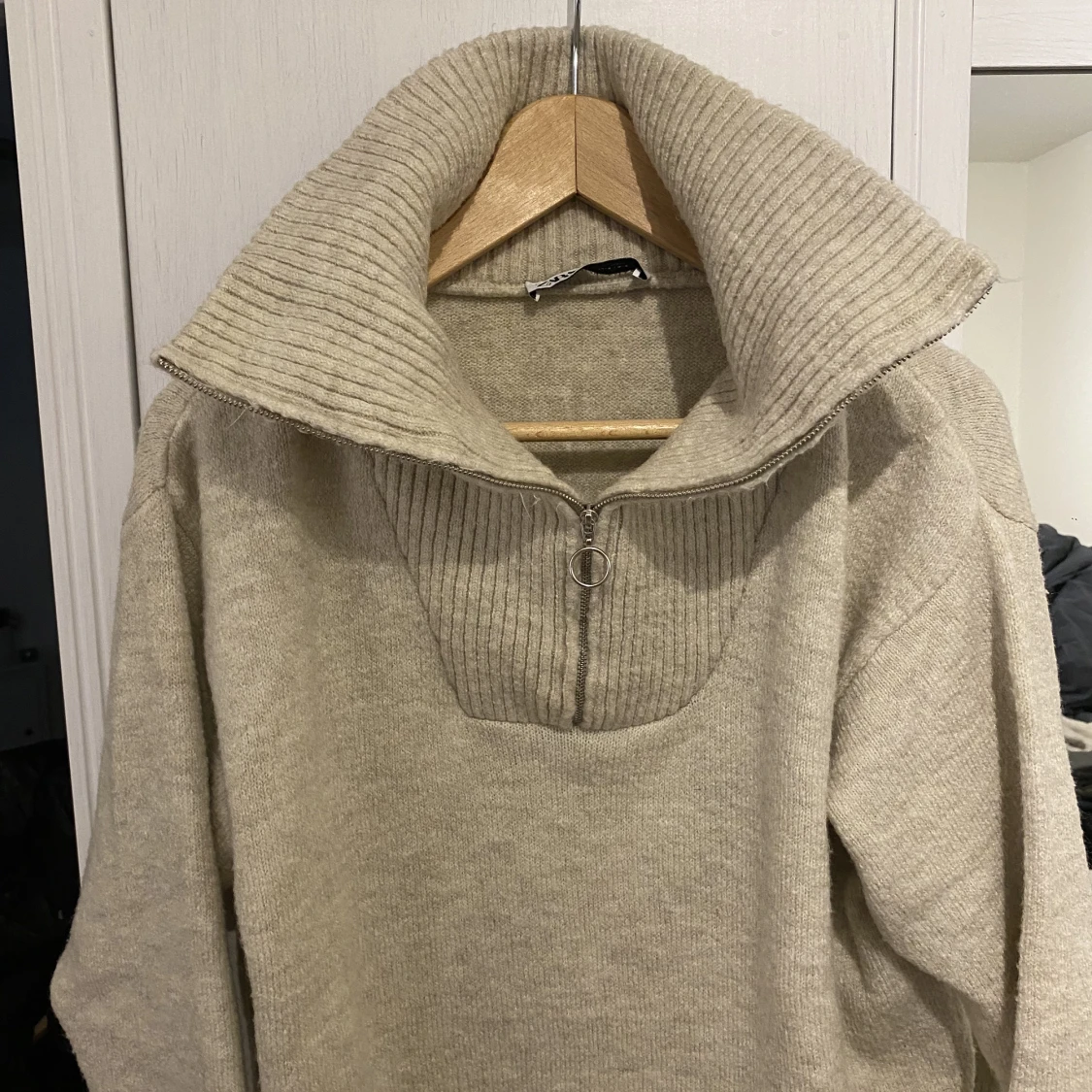 så snygg beige tröja med zip från zara! aldrig använd så den är i nyskick!❤️