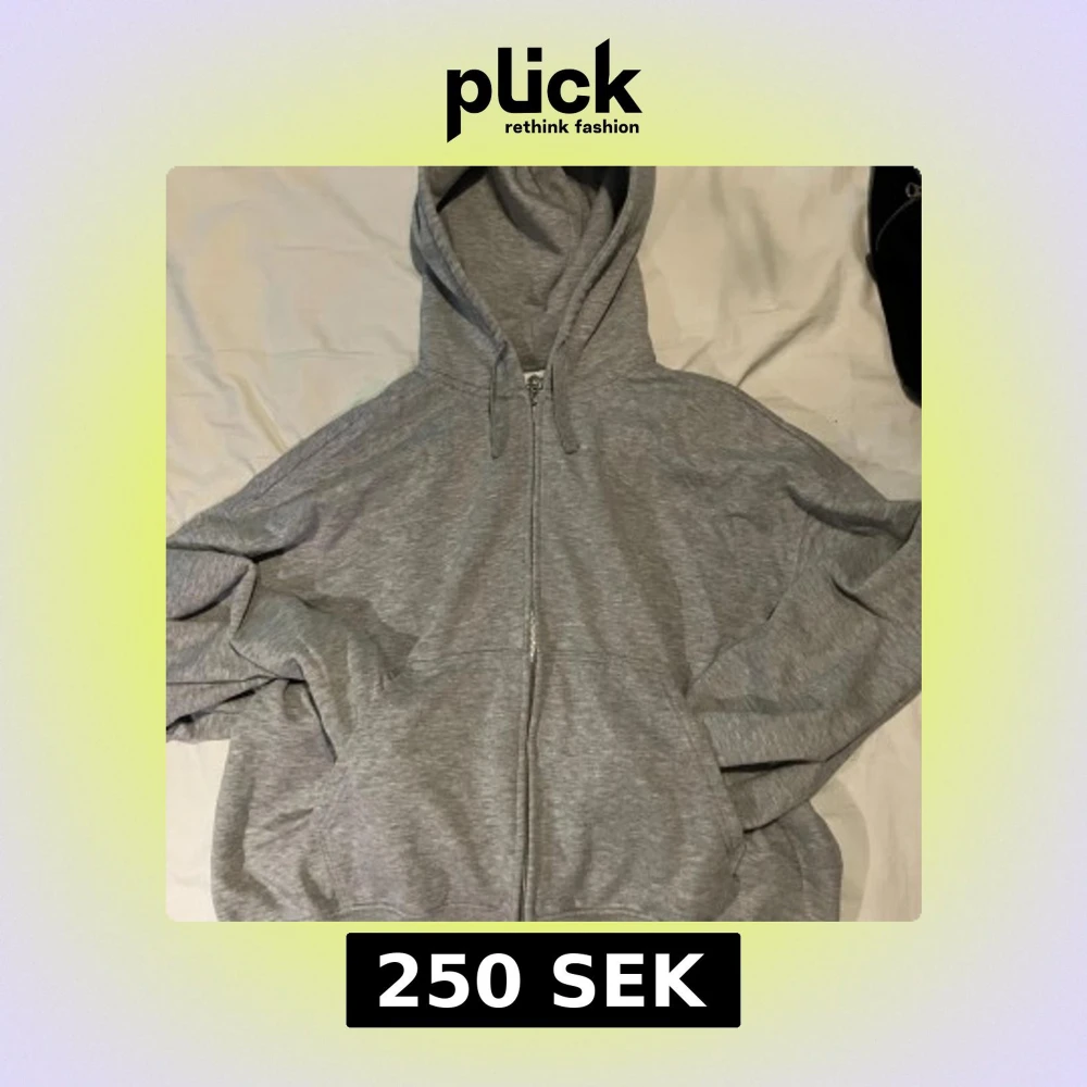 Säljer en stilren grå hoodie från Weekday i storlek L. Den har en dragkedja framtill och en praktisk huva med snören. Perfekt för en avslappnad look.