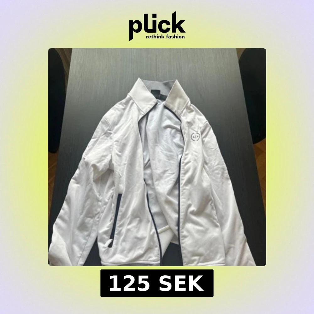 Säljer en stilren vit tröja från Armani Exchange med dragkedja. Tröjan har en broderad Armani Exchange loga på bröstet och långa ärmar. Perfekt för dig som vill ha en fräsh outfit! (det är en herr tröja men passar jätte bra på tjej med)