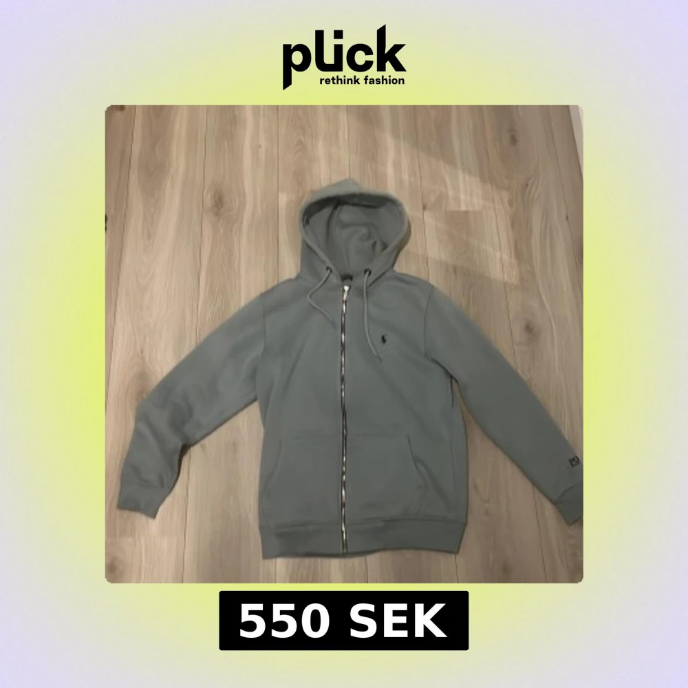 Står Medium men sitter och känns som Large.(Därför jag säljer den eftersom trodde den skulle vara Medium men den passa inte) Snygg grå hoodie från Polo Ralph Lauren med dragkedja, huva med snörning och broderad logga på bröstet. Mjuk insida och två fickor framtill. Klassisk och stilren design med Polo-brodyr även på ärmen.