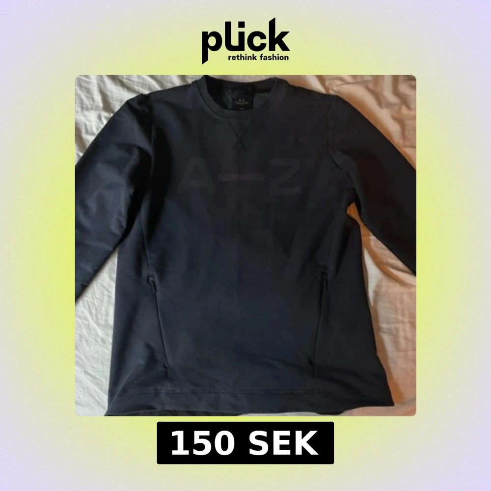Säljer en svart sweatshirt från A-Z i storlek M. Tröjan har diskret A-Z-logga framtill, rund halsringning och två praktiska dragkedjor vid sidorna. Perfekt för en clean och stilren look.