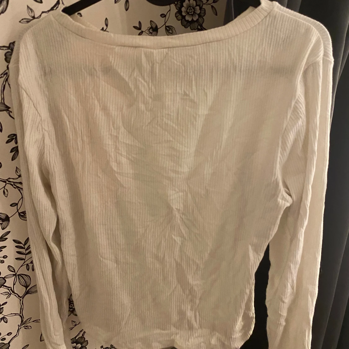 Säljer en vit ribbad långärmad tröja. Den är supermjuk och perfekt för både vardag och mysiga hemmakvällar. Tröjan har en normal passform och är i bra skick. Passar perfekt till jeans eller kjol!