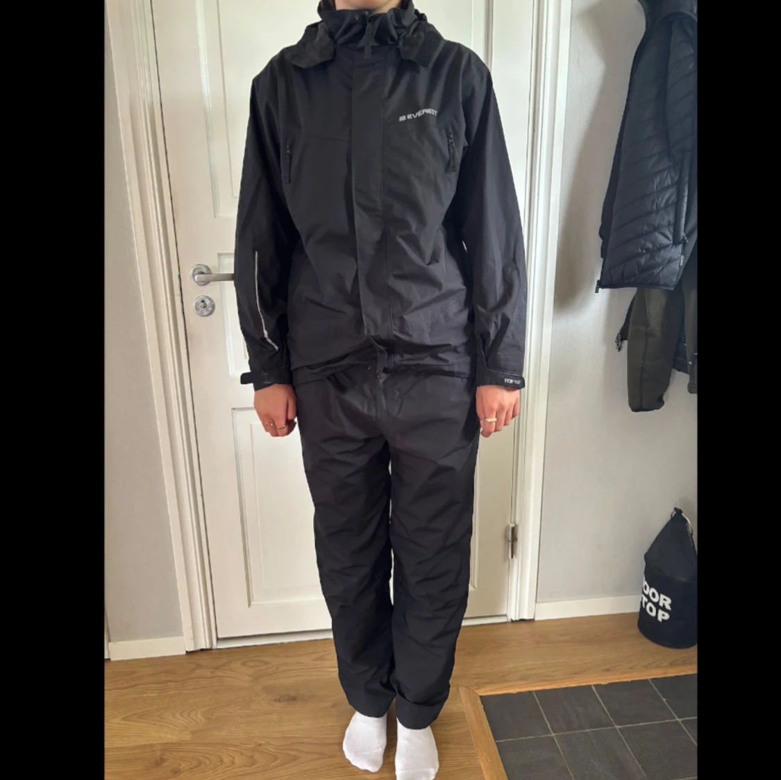 Svart vind/regn-jacka och byxor från Everest 158/164