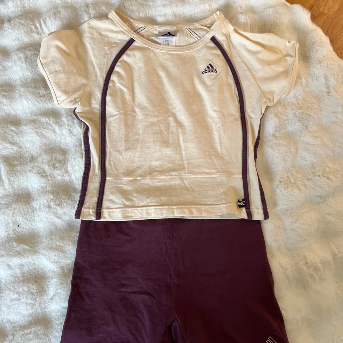 Träningsset från Adidas står stl L men är bra i storlek för mig som har xs-s. Perfekt för träning eller en aktiv vardag. Det är en tröja och ett par shorts man kan också såklart köpa bara tröjan eller bara shortsen, knappt använda så väldigt bra skick. Hör av er om frågor, pris går att diskutera!❤️