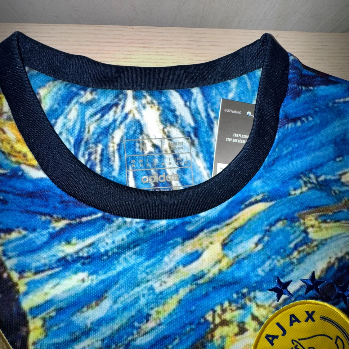 Stick ut i sommarvärmen med denna exklusiva Ajax-tröja designad i samarbete med Van Gogh-museet! Denna limiterade upplaga från Adidas kombinerar fotbollskultur med ikonisk konst – ett måste för både samlare och stilmedvetna fans. Tröjan har en tryck inspirerad av Van Goghs mästerverk Stjärnenatt, komplett med Ajax-emblem och Ziggo-sponsormärke i guld. Perfekt för matchdag, streetwear eller som unik present.