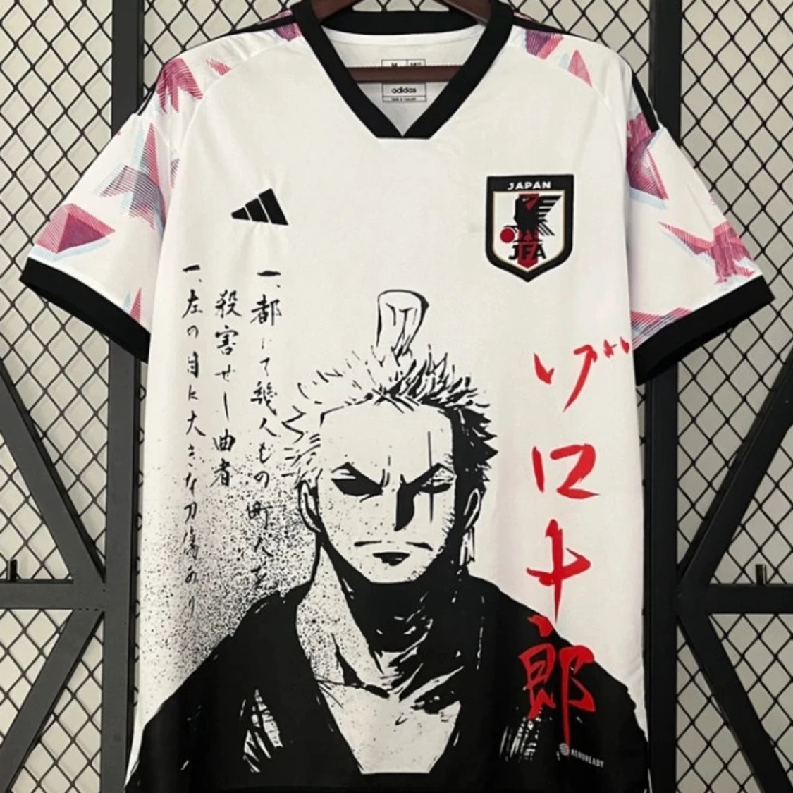Snygg vit Japan fotbollströja från Adidas med cool anime-design. Tröjan har korta ärmar och svart krage. Perfekt för anime- och fotbollsfans som vill sticka ut på planen eller läktaren.