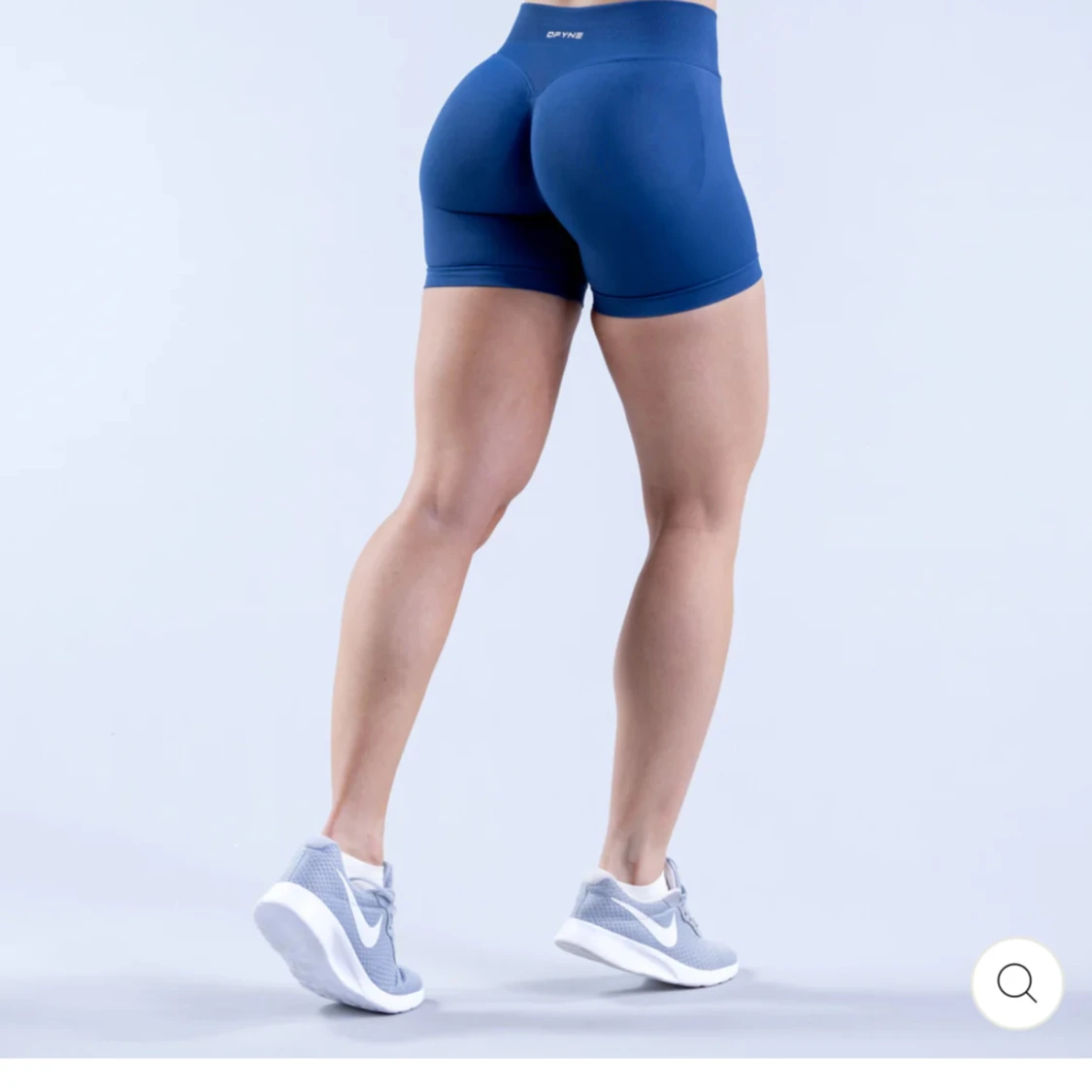 Snygga blå träningstights-shorts från DYEINE med hög midja och tight passform. Perfekta för gymmet eller löpning, tillverkade i stretchigt syntetmaterial som sitter skönt och formar kroppen. Stilren design utan mönster och med diskret logga i midjan.