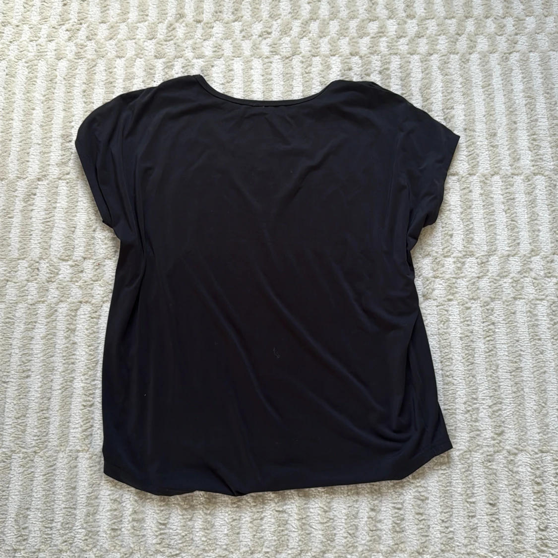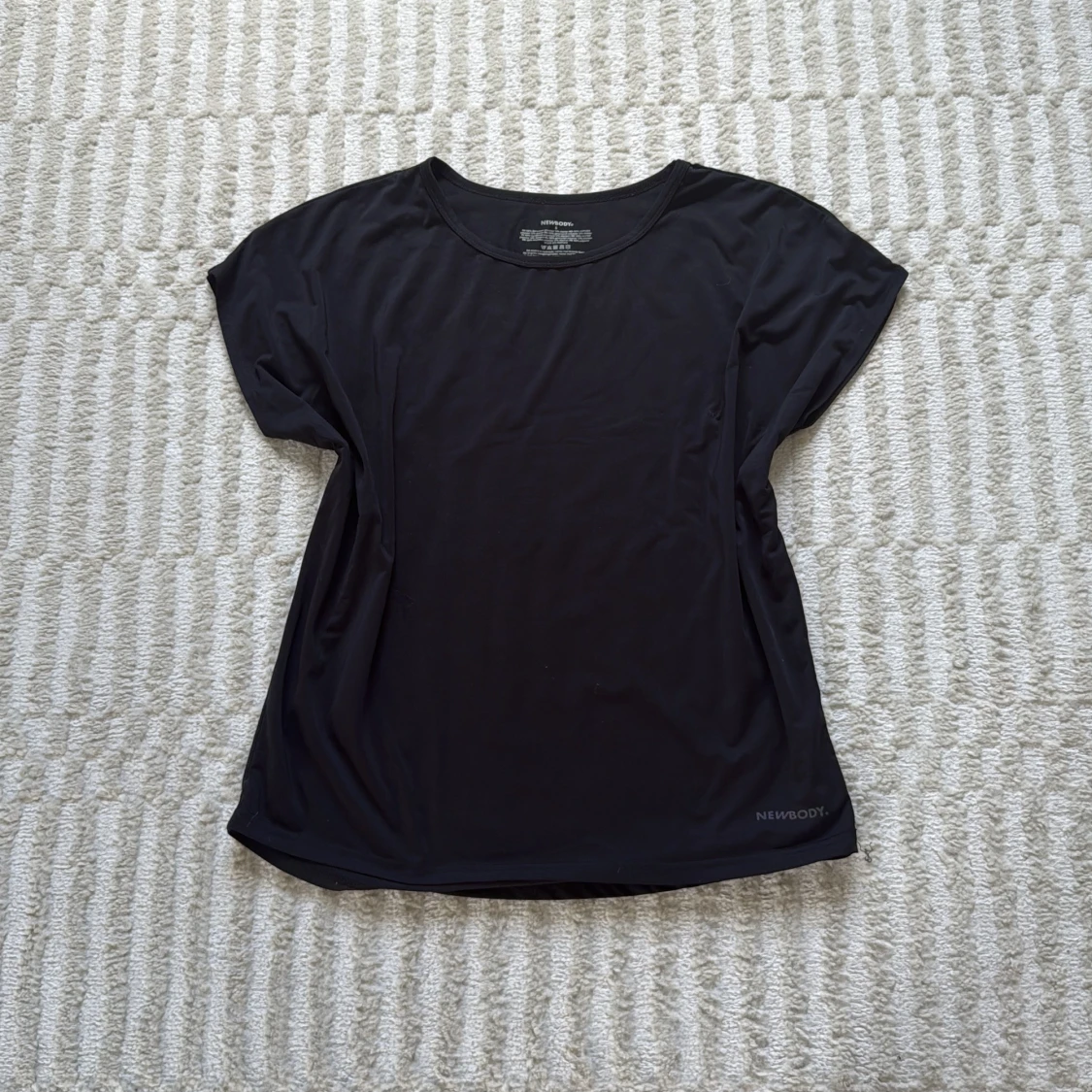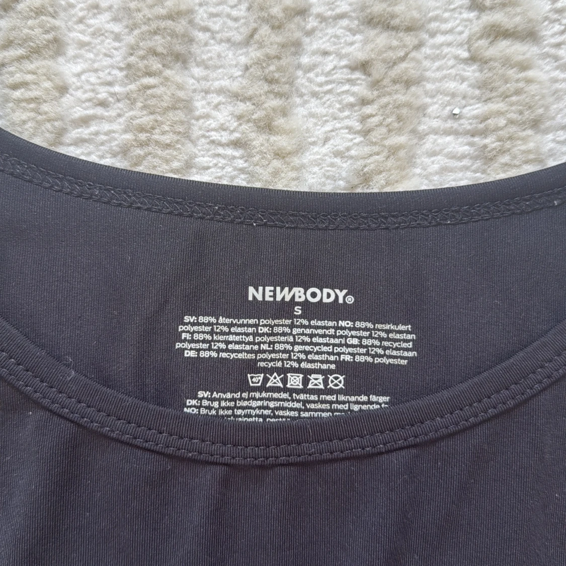 Svart t-shirt från Newbody i mjuk och stretchig polyesterblandning. Modellen är enkel med rund hals och korta ärmar, perfekt för träning. Materialet är lätt och andas, vilket gör den skön att ha på sig när du är aktiv. Om du är intresserad av denna har jag en likadan fast i mörkgrå på min profil💕