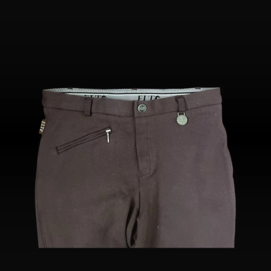 Snygga bruna ridbyxor från ELT Paris med förstärkta knäpartier i mörkare brunt. Byxorna har dragkedjeficka fram, bälteshällor och klassisk passform. Perfekta för dig som gillar ridning och vill ha stilrena, funktionella byxor. Skickar inom 1-2 dagar!! Tar emot bud, storlek 170/xs
