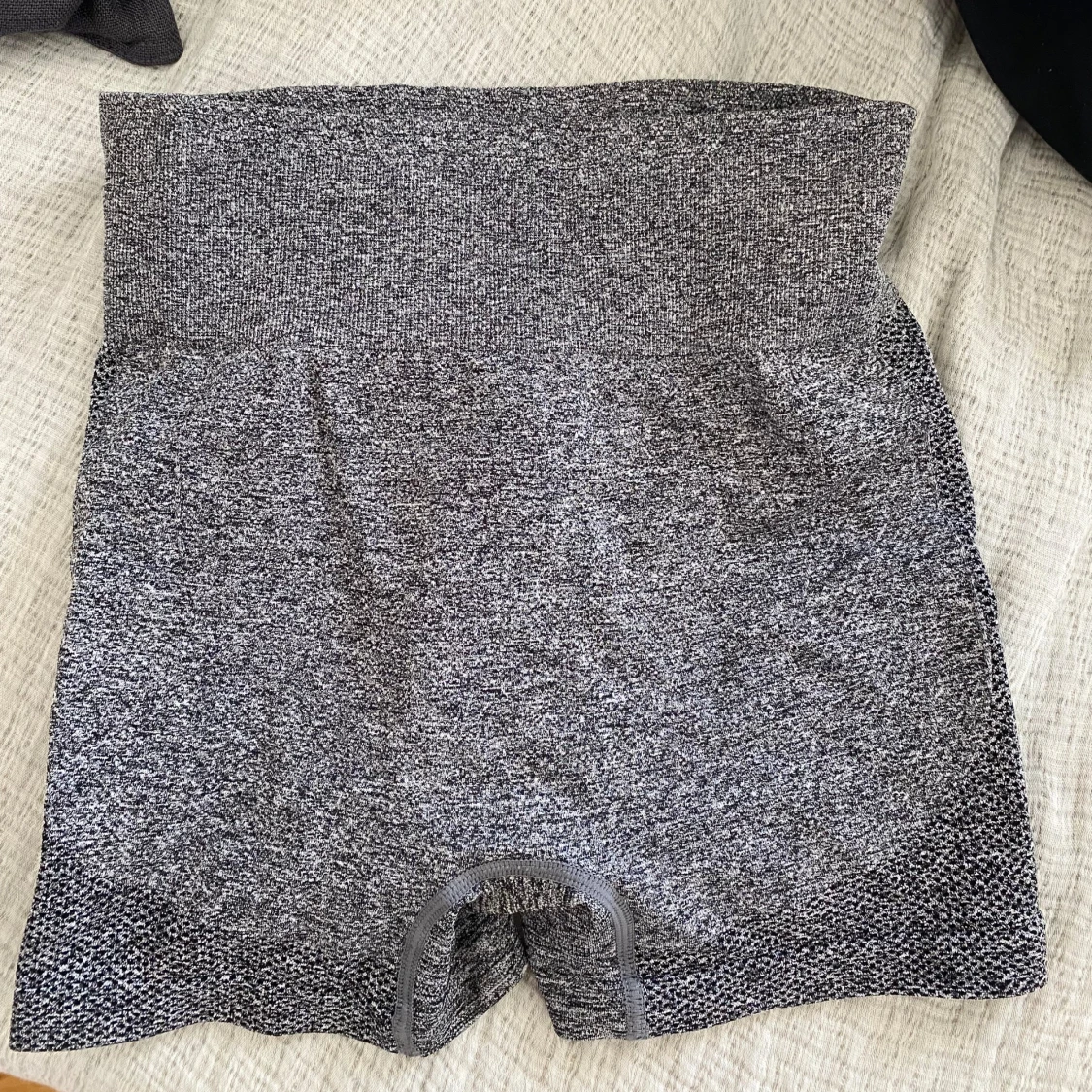 Grå shorts med hög midja och tight passform. Materialet är stretchigt. Perfekta för gymmet. Snyggt mönstrad struktur på baksidan.