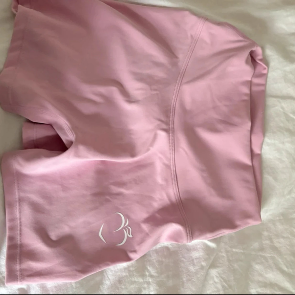 Säljer ett par ljusrosa träningstights shorts från peach. De är aldrig använda, pris lappen är inte kvar men är i helt perfekt skick