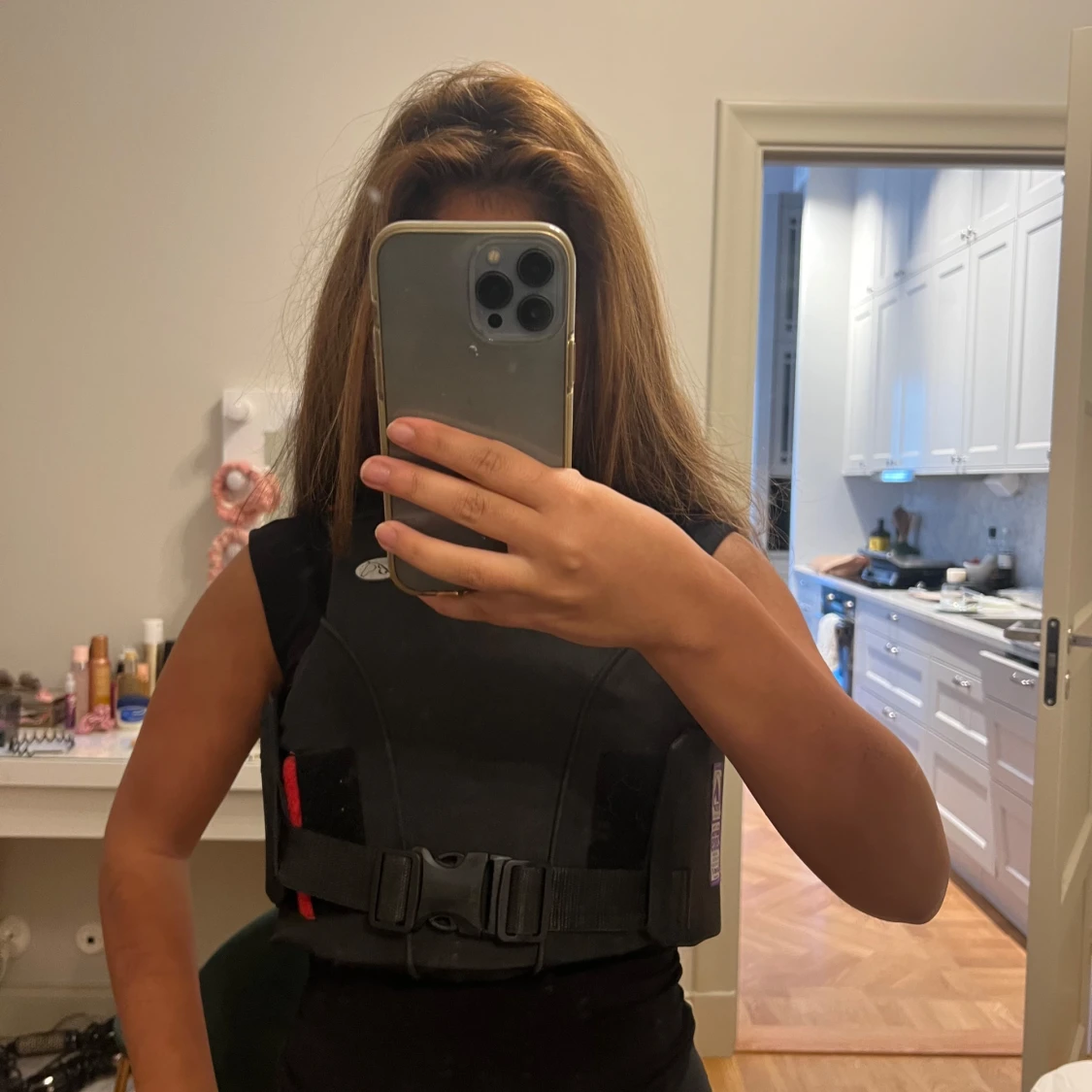 Ridväst som knappt är använd. Nypris 650kr. Kvitto finns. Den är längre där bak men fick ingen bra bild men den är perfekt för er som gillar att hoppa och utmana er själva lite inom ridsporten, till någon som vågar ta risker eller någon som bara vill känna sig säker. Storlek M. Pris kan diskuteras
