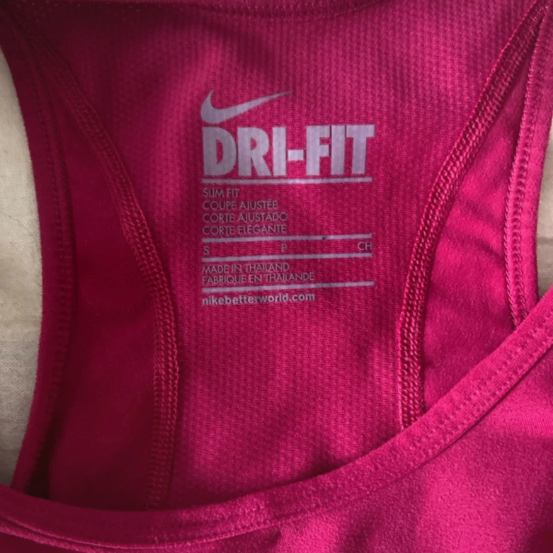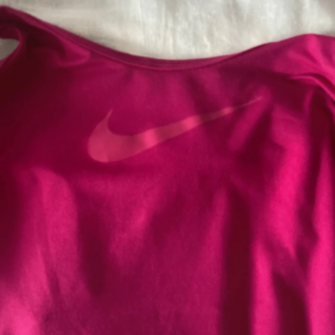 Säljer ett sportigt rosa Dri-Fit linne från Nike med klassisk logga framtill. Linnet har racerback och är tillverkat i ett funktionsmaterial som andas, perfekt för träning. Slim fit-modell som sitter snyggt och bekvämt.