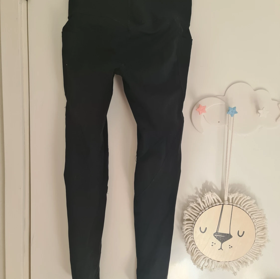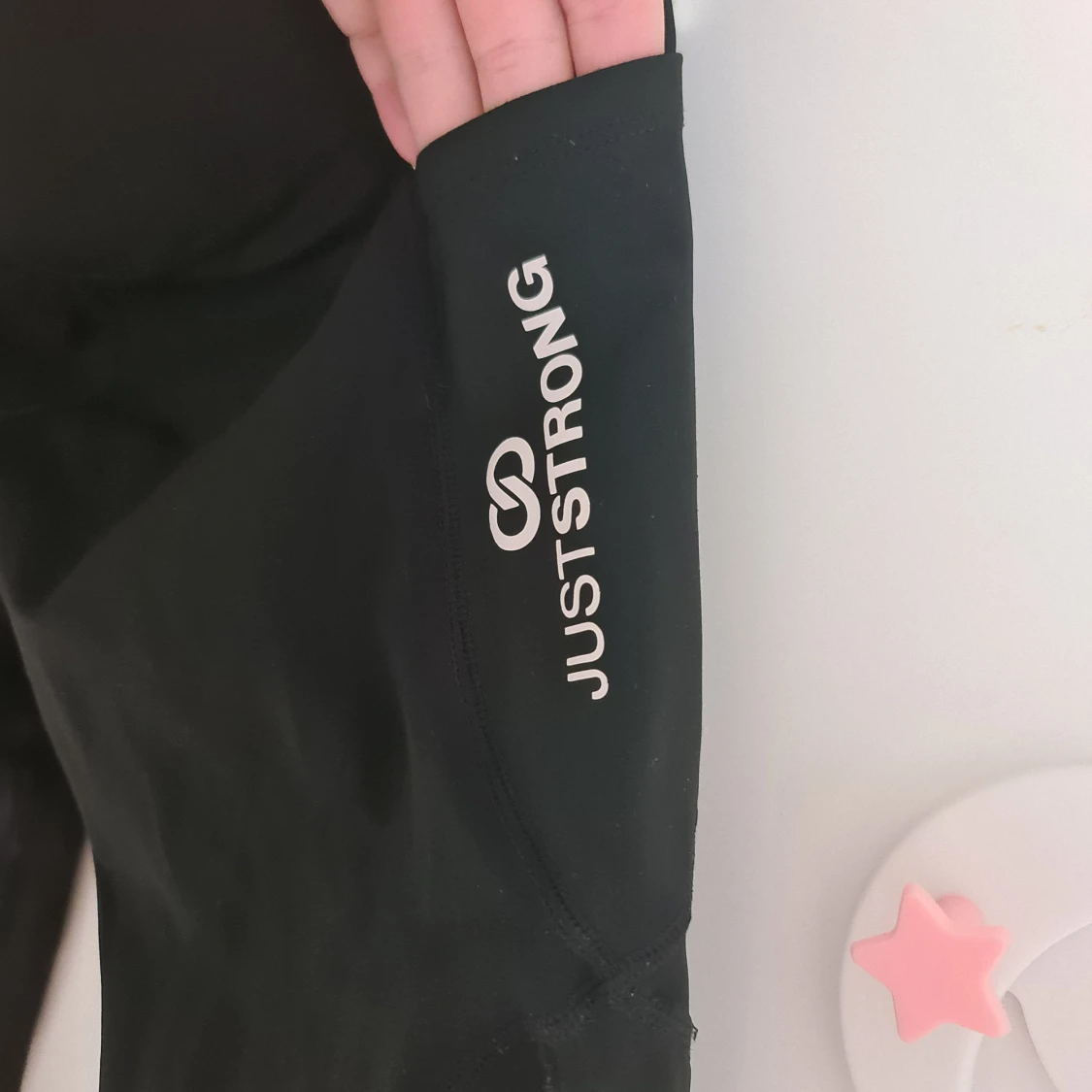 Svarta tights från Just Strong med logga på benet. De är tighta och har hög midja, perfekta för träning eller gym. Gjorda i stretchigt syntetmaterial som sitter skönt och följsamt. Det finns två rymliga fickor på båda sidorna , perfekt för att förvara gymkort eller mobil. Mycket bra skick ny pris ca 800 kr.