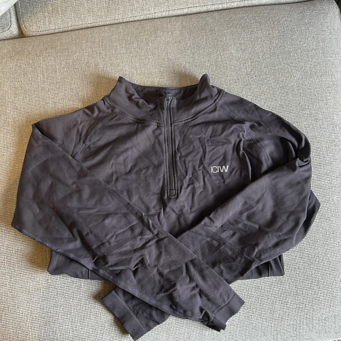 Säljer en grå långärmad tröja från ICANIWILL med halv dragkedja.