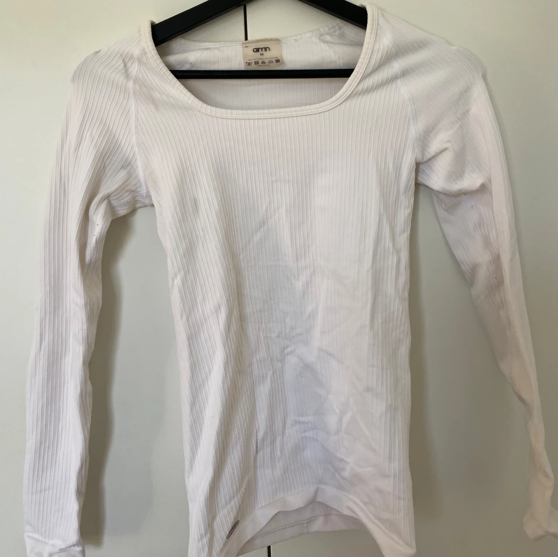 Säljer en vit långärmad topp från Aim'n i storlek XS. Toppen har ribbad struktur