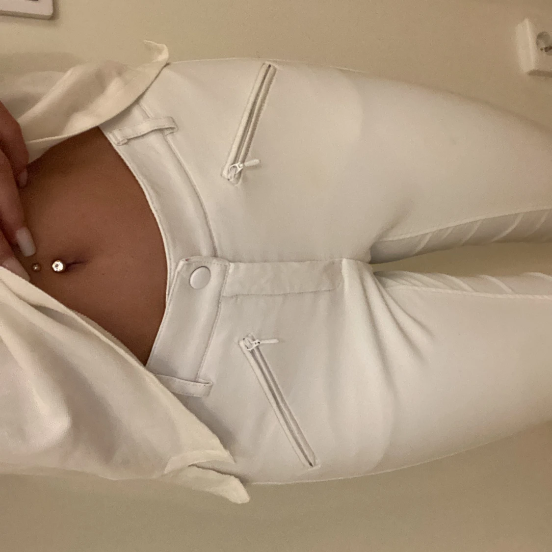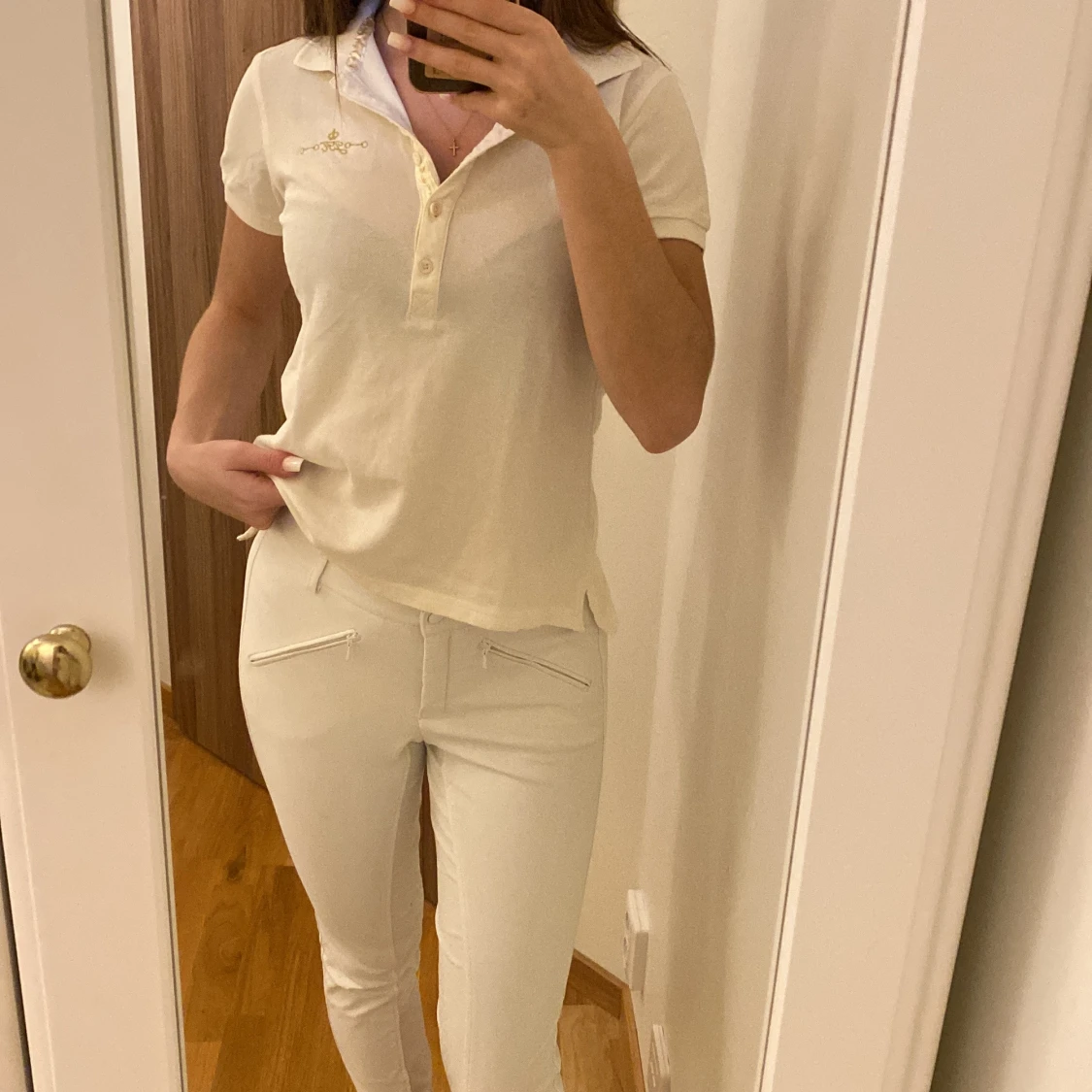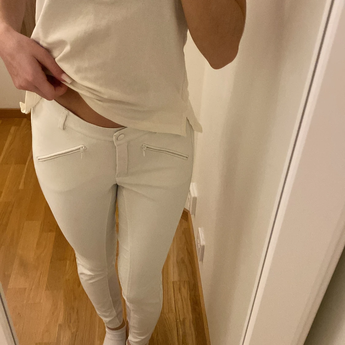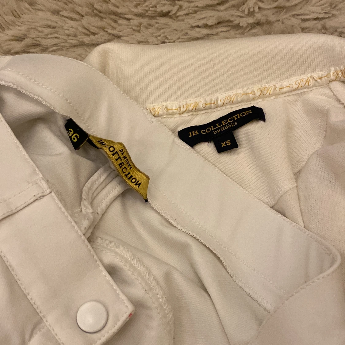Säljer båda för 150. Kan köpas enskilt, då kostar byxorna 100 och tröjan 50. Båda från JH COLLECTION by Hööks. Tröjan Xs. Byxorna storlek 36. Jag är 164 och byxorna går ner till mina anklar (se bild.) Byxorna har framfickor, samt lite grepp vid insida lår. En svag fläck finns på byxornas framsida (se bild 4!) Skriv för mer bilder/info❤️Tröjan är inte kritvit utan mer cremefärgad.