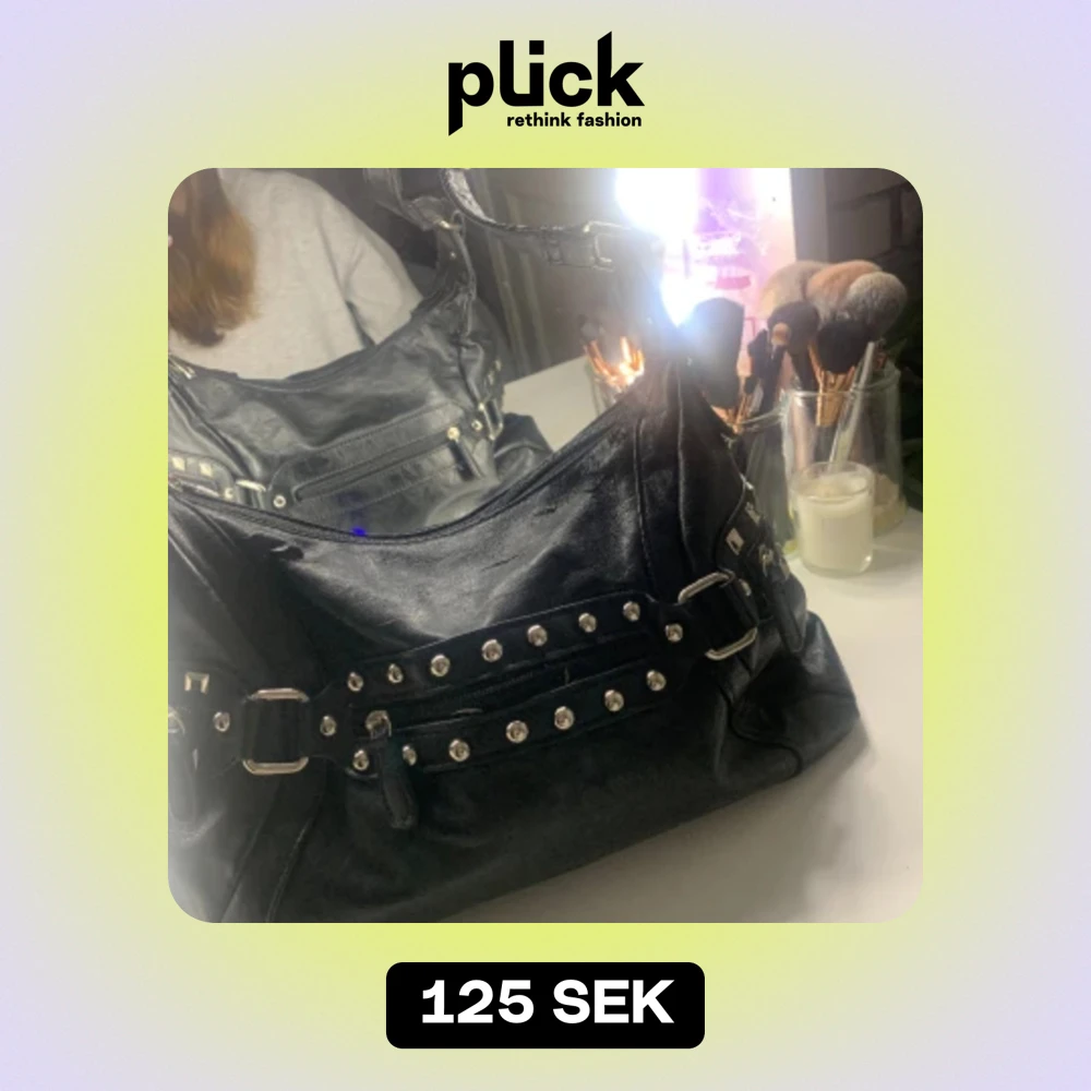 💖Säljer en väska med nitar.💖4 fack utanpå och 3 mindre fack inuti. 30x12cm på botten. Väskan har några defekter (se sista bilden) men det kanske går o fixa. Kan skicka fler bilder och tryck gärna på köp nu💗✨🛍️❤️❤️