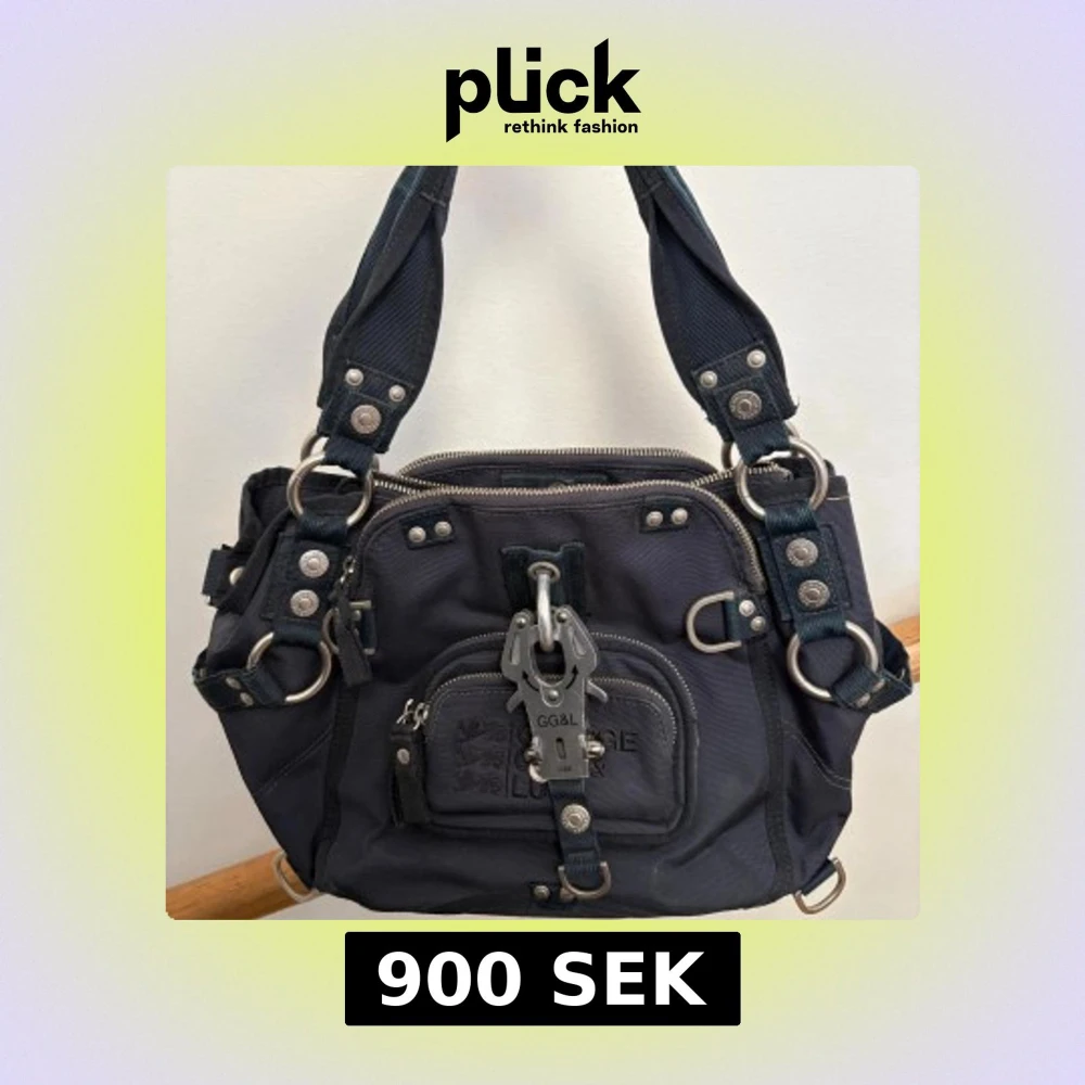 Cool svart axelväska från George Gina & Lucy, modell Principessa. Väskan har robusta handtag, många metalldetaljer och dragkedjor, samt en framficka med broderad logga. Tillverkad i slitstark polyester med snygga ringar och nitar för en edgy look.