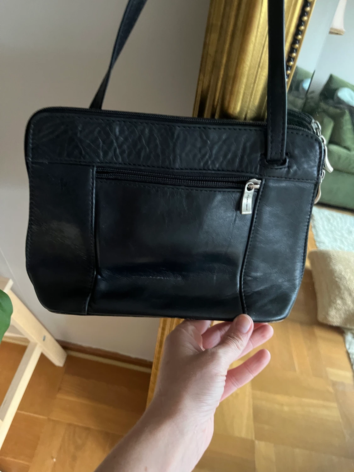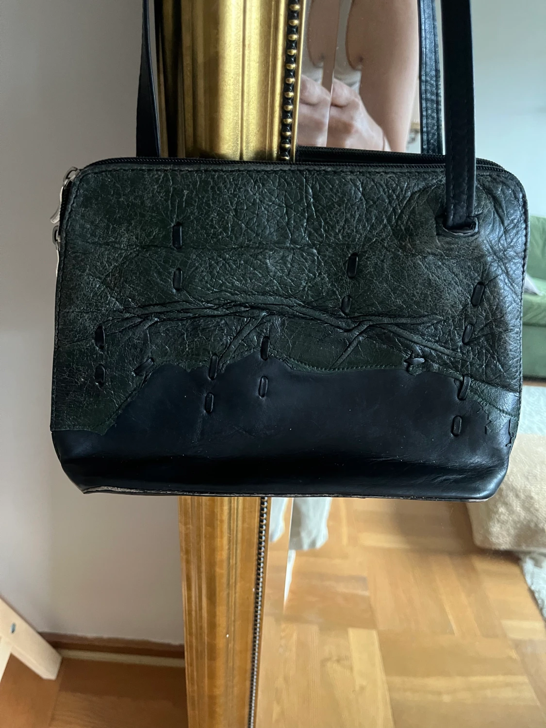 Skinnväska köpt vintage. Aldrig använd av mig och den är i fint skick. Finns fack inuti väska. Och att långt axelband. 17 höjd & 27 bred ish