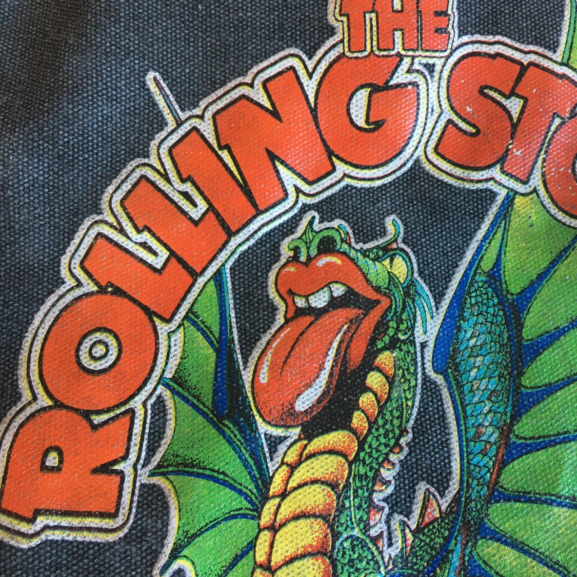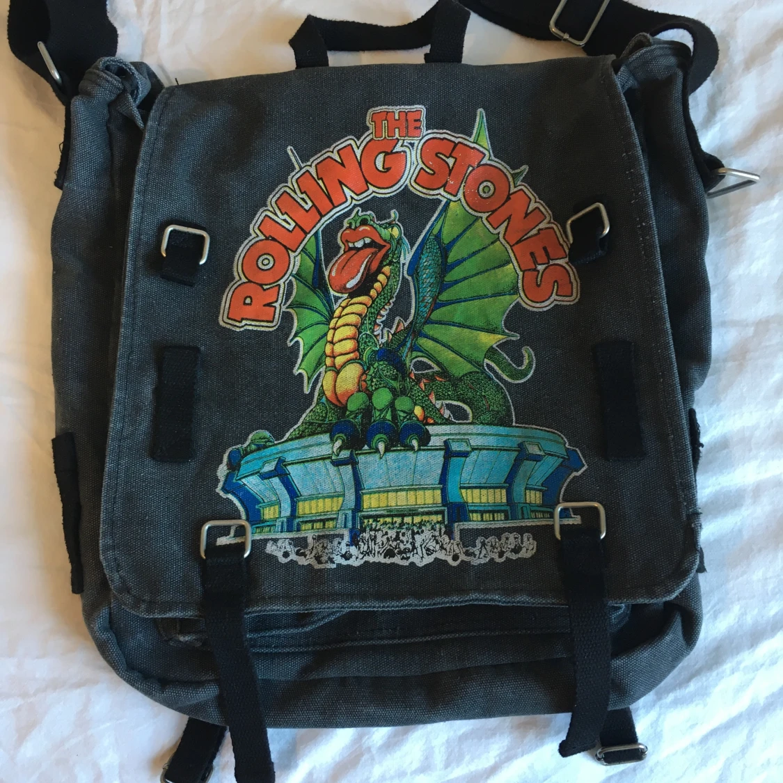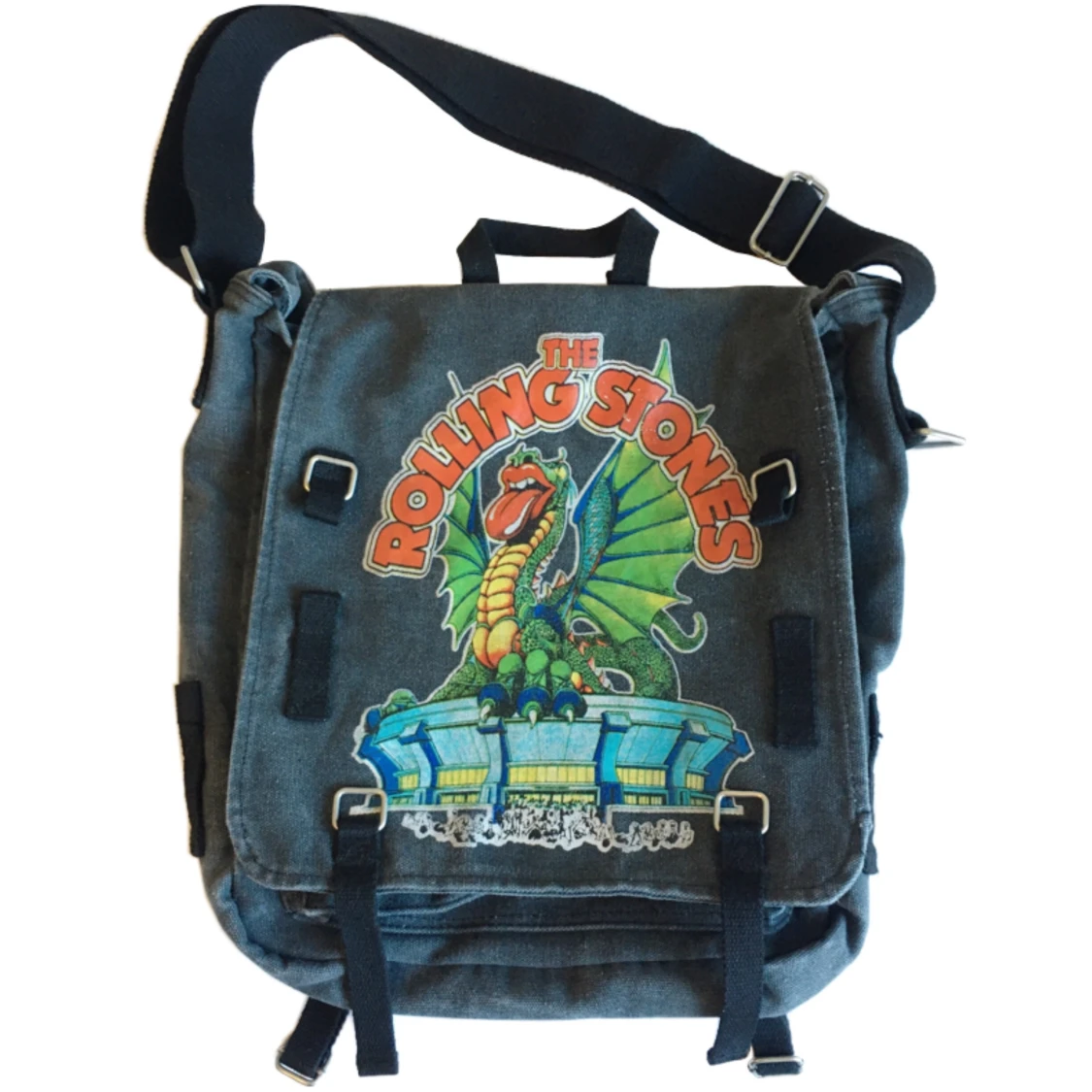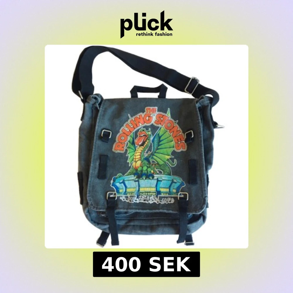 Vintage Rolling Stones band väska/ axelremsväska/ tygväska, Bredd rakt över 40cm, Höjd rakt över 41cm