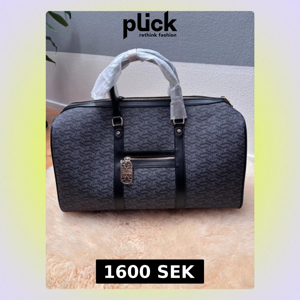 Ny och äkta! Snygg och rymlig weekendväska från 19V69 Italia i mörkgrått med svart geometriskt mönster.