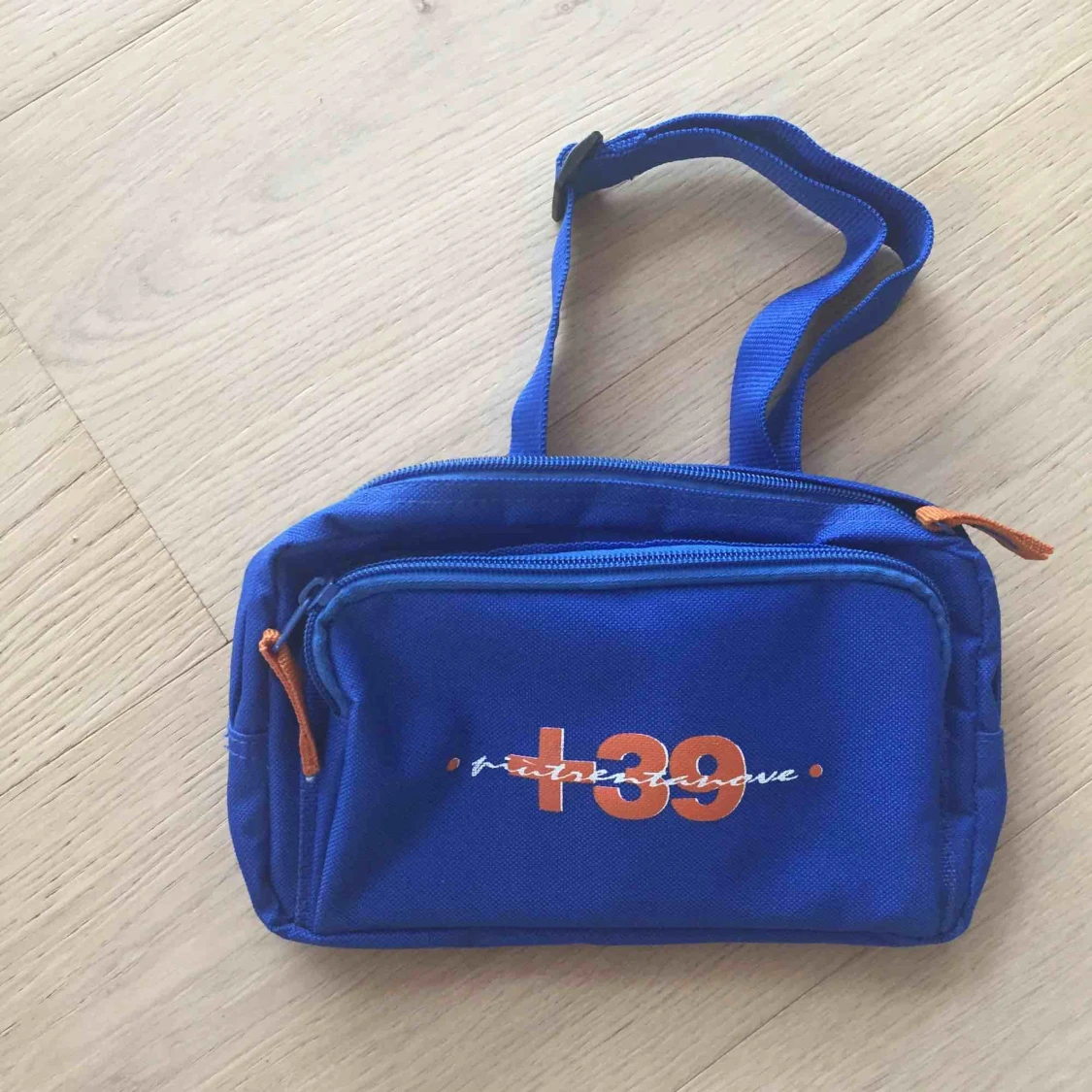 Madväska/midjeväska Äldre men oanvänd, bra skick, klar blå med organet tryck! Möts gärna upp:)